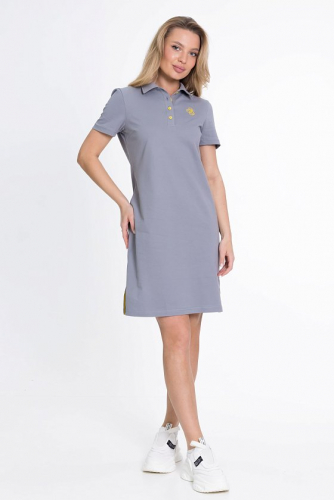 Платье выполнено из хлопкового полотна. Модель прямого кроя с короткими рукавами и круглым вырезом горловины, оформленным планкой. Спереди украшено стильным принтом, что придаёт образу яркость и индивидуальность.