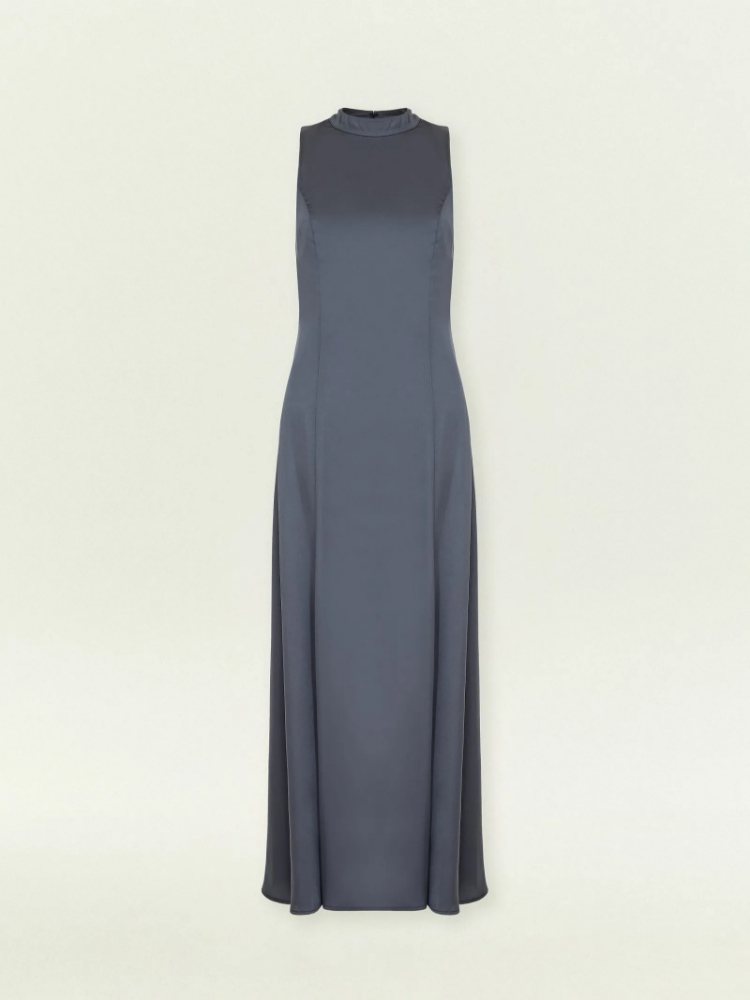 Атласное платье в цвете грозового неба — эффектный выбор к любому празднику или торжественному событию, от вручения дипломов или наград до юбилея и новогоднего фуршета. Достаточно дополнить лишь высокими перчатками и клатчем: безупречный образ в стиле lady like готов. Модель макси без рукавов и с полустойкой смотрится очень элегантно. Платье выполнено без подкладки из материала с высоким содержанием ацетата: материал не мнётся, не электризуется и обладает эластичностью