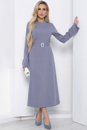 Теплое платье из уютного и мягкого трикотажа элегантно подчеркнет все достоинства фигуры. Длинное лаконичное платье подойдёт для создания повседневного образа. Отлично сидит по фигуре, выделяя женственные формы. Низ рукава и платья обработан закруткой. В комплект входит пояс из основной ткани с акцентной белой пластиковой пряжкой.