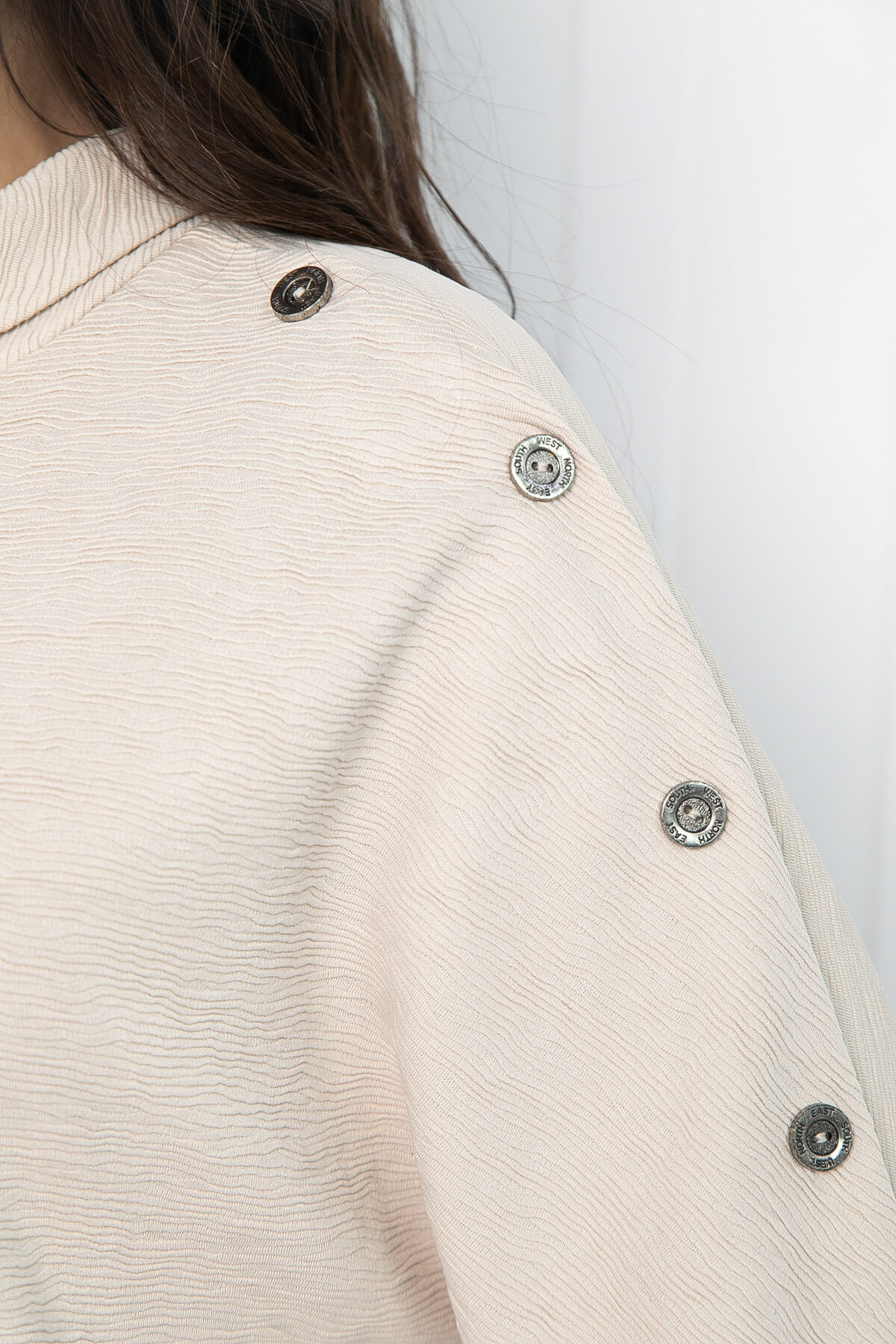 Декоративные элементы: пуговицы по линии одного плеча.