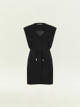 Чёрное платье A-силуэта чуть выше колена отлично подойдёт для повседневных и офисных образов. Выполнено из практичного материала с содержанием шерсти и с добавлением эластана, хорошо садится по фигуре. Изготовлено на приятной к телу подкладке из вискозы.