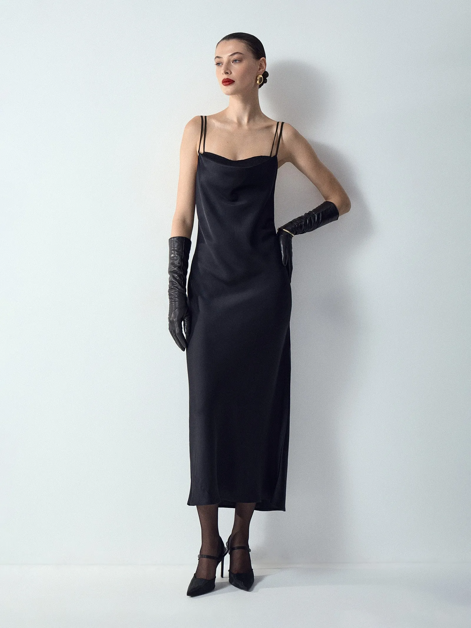 Смелое платье для обольстительных образов к особым случаям. В комплекте с платьем идёт топ. Модель макси на длинных тонких бретелях глубоко открывает спину, привлекает внимание к зоне декольте, визуально вытягивает силуэт. Великолепно сочетается с такими трендовыми аксессуарами, как перчатки и чокеры. Платье не мнётся и не электризуется благодаря высокой доле ацетата в составе. Также материал обладает эластичностью. Изделие выполнено на гладкой подкладке.
