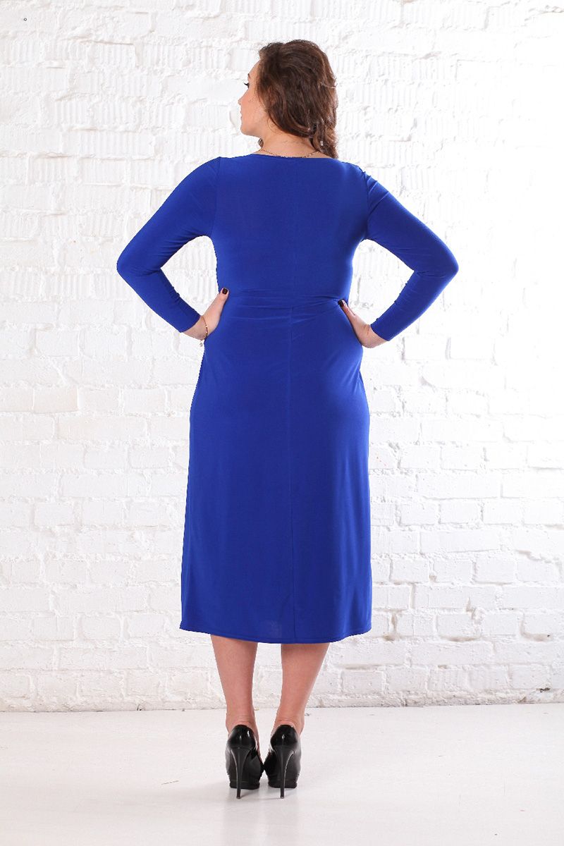 Васильковый Красивое и элегантное платье из эластичного трикотажа. V-образный вырез прекрасно подчеркивает зону декольте, а сборка скрывает несовершенства фигуры. Платье прекрасно подойдет как для праздника, так и для повседневного использования.