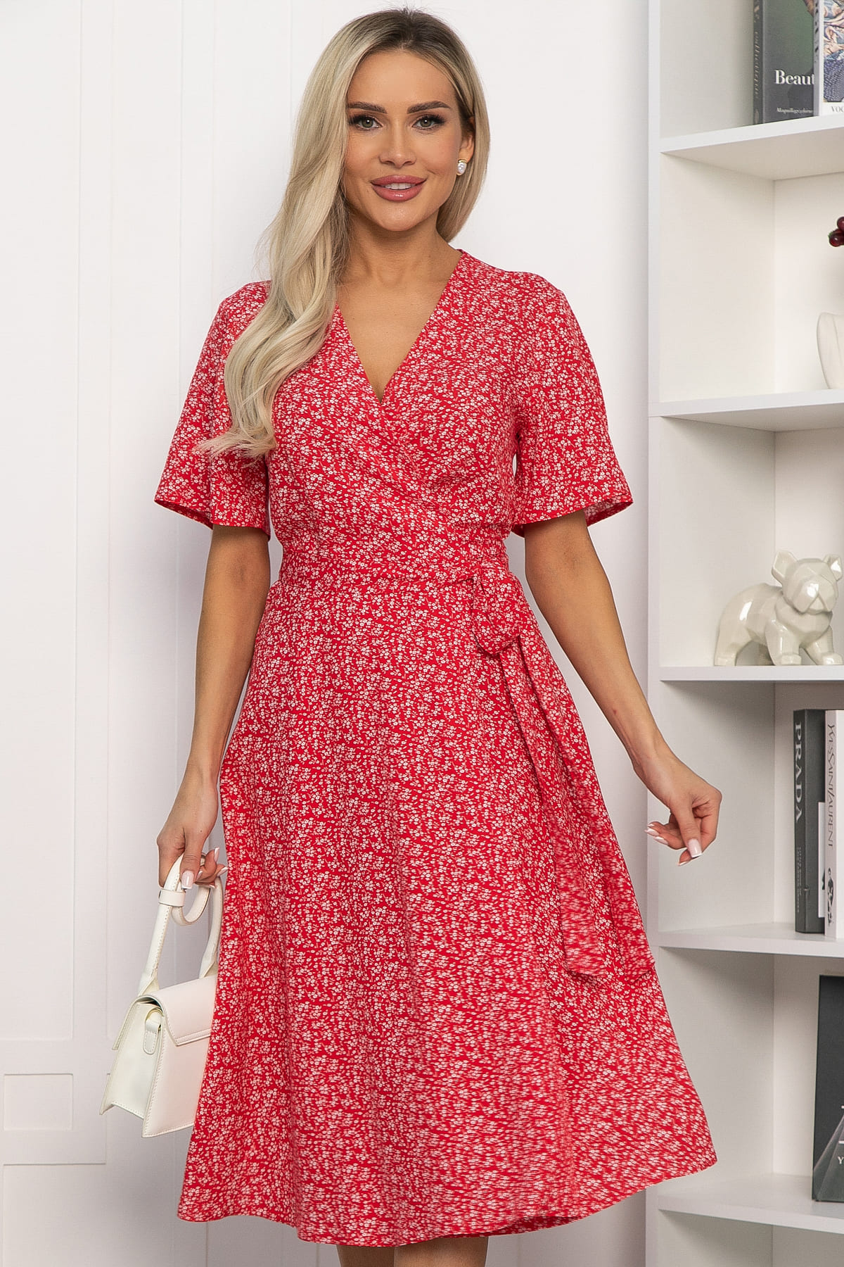 Яркое платье не оставит вас без внимания окружающих! Стильный и элегантный фасон позволит вам чувствовать себя женственно и привлекательно в любой ситуации. Платье на запах с V-образной горловиной и укороченными цельнокроеными рукавами обеспечивает комфорт и свободу движений. Вшитый пояс, завязывающийся сбоку, добавляет изюминку и подчеркивает силуэт. Это платье станет отличным выбором для особых случаев и повседневных выходов, позволяя вам выглядеть безупречно!