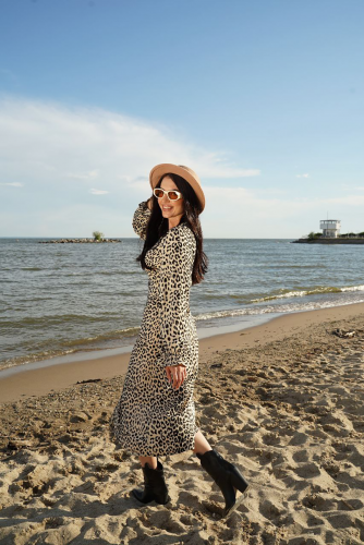 Невероятно нежное платье из легкой ткани отлично подойдет на каждый день. За счет своего принта, изделие отлично смотрится даже без украшений. Преимущества фигуры подчеркнет пояс из основной ткани, который идет в комплекте.