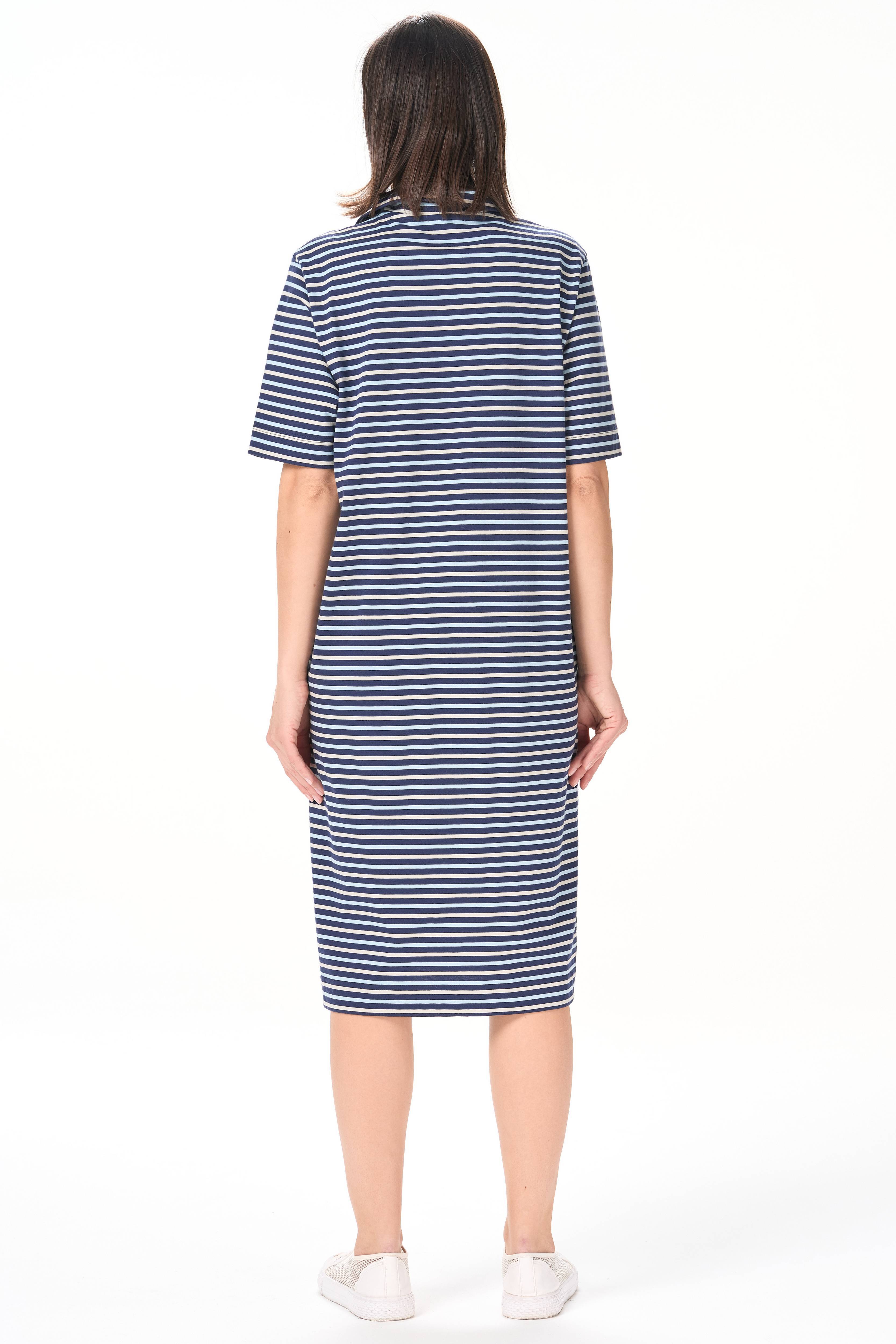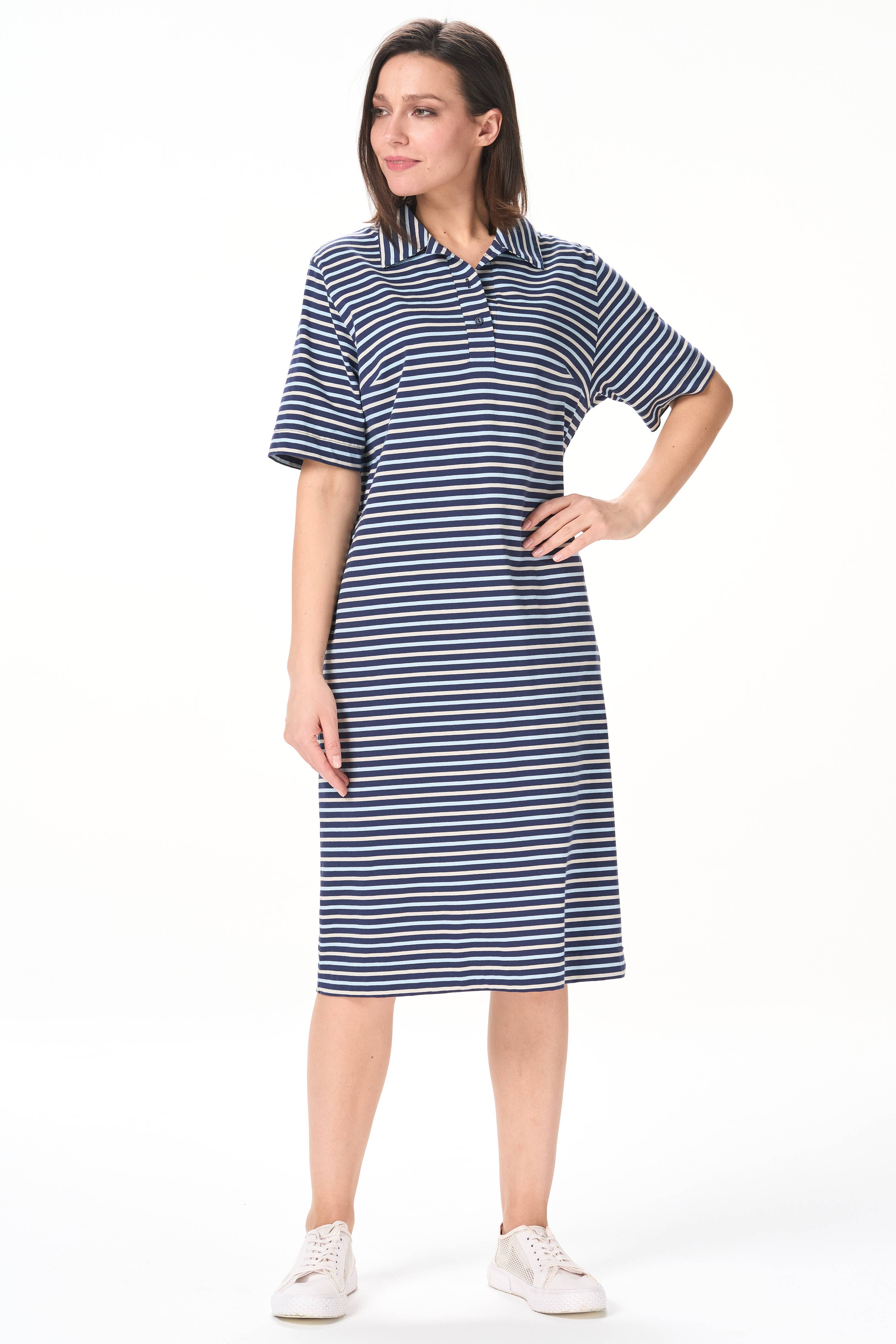 Классическое платье-поло прямого силуэта из вязанного хлопкового полотна качества пенье. В боковых швах карманы. Модель с отложным воротником, застежка планка с пуговицами. Рост модели 170см.