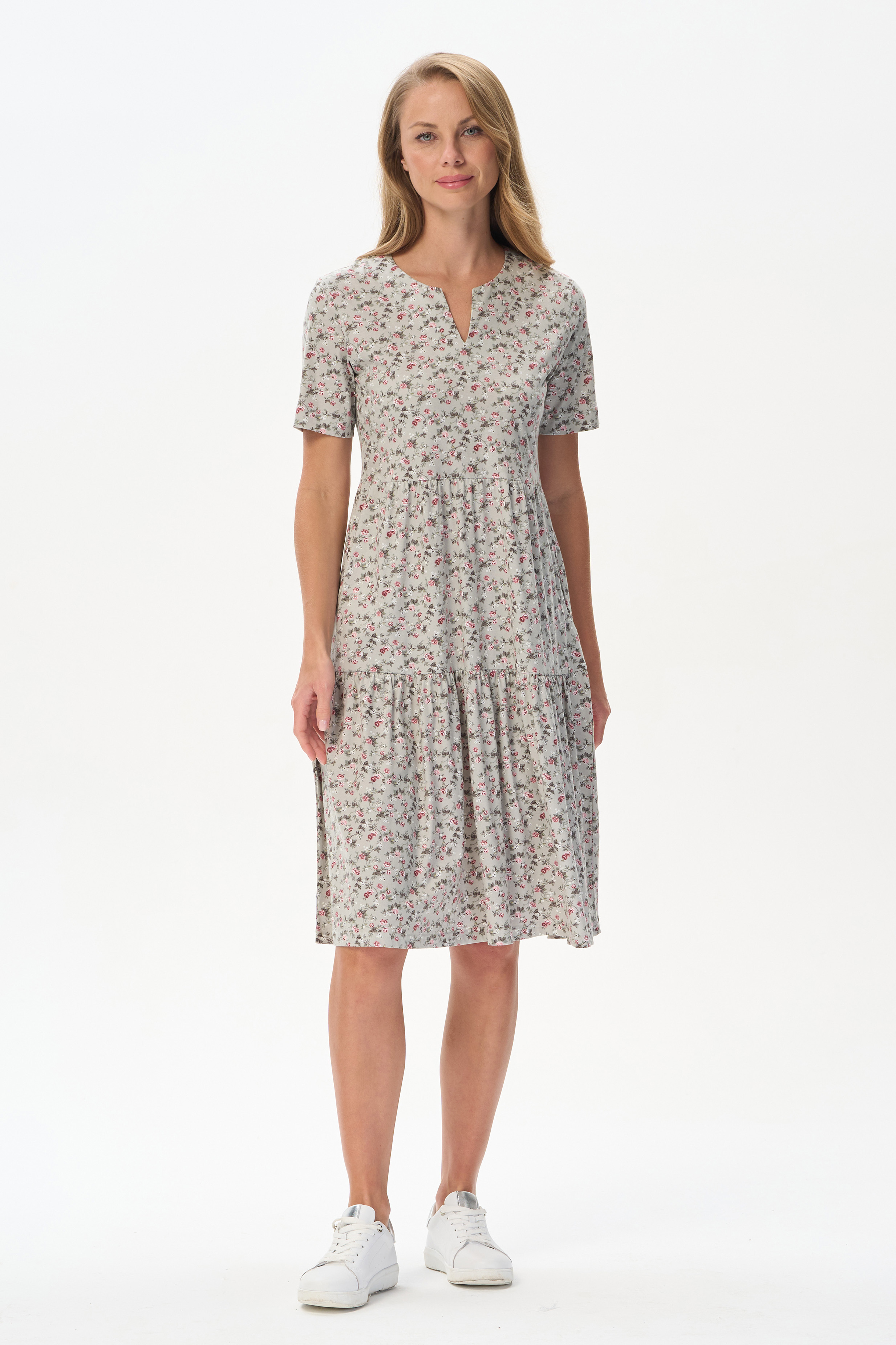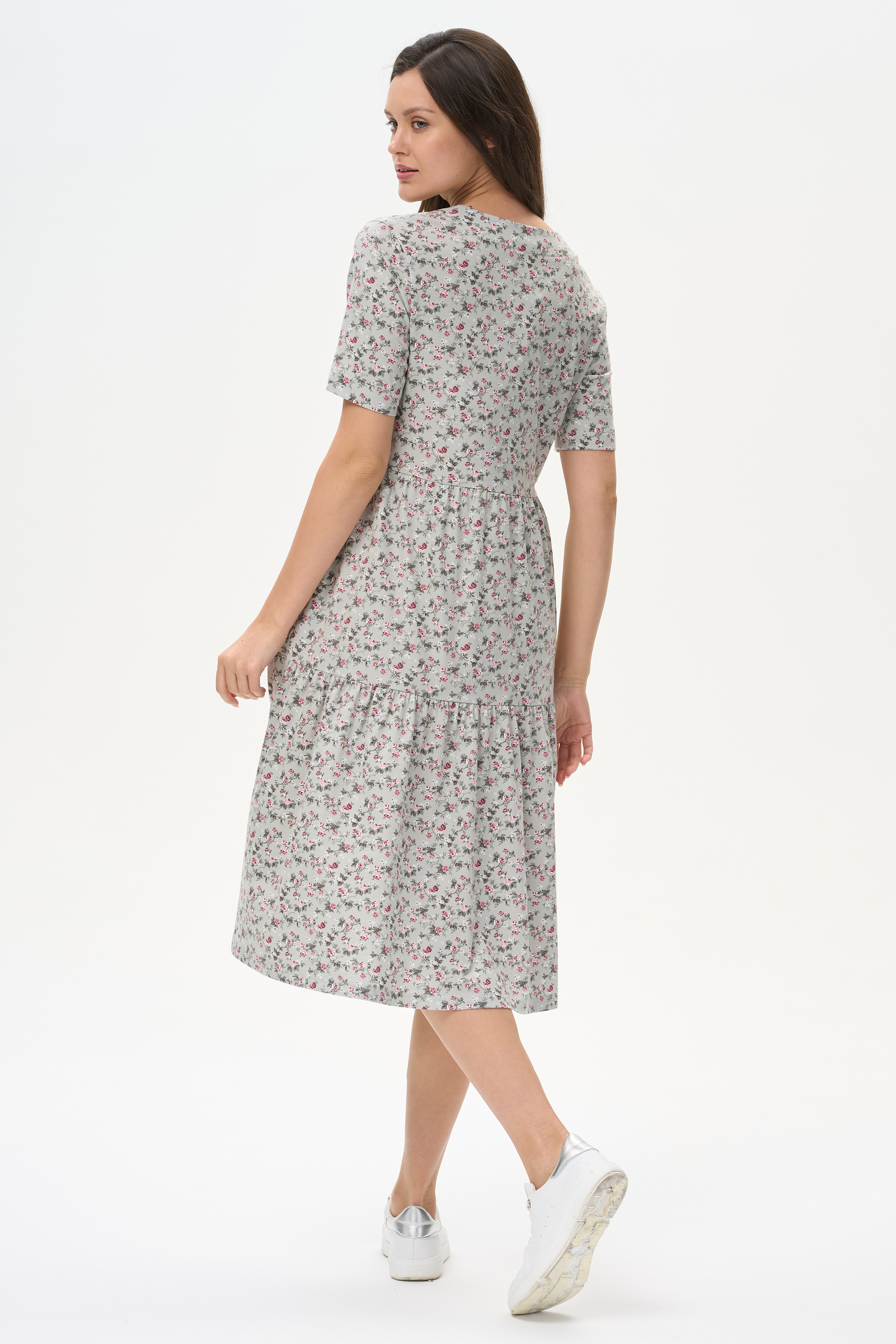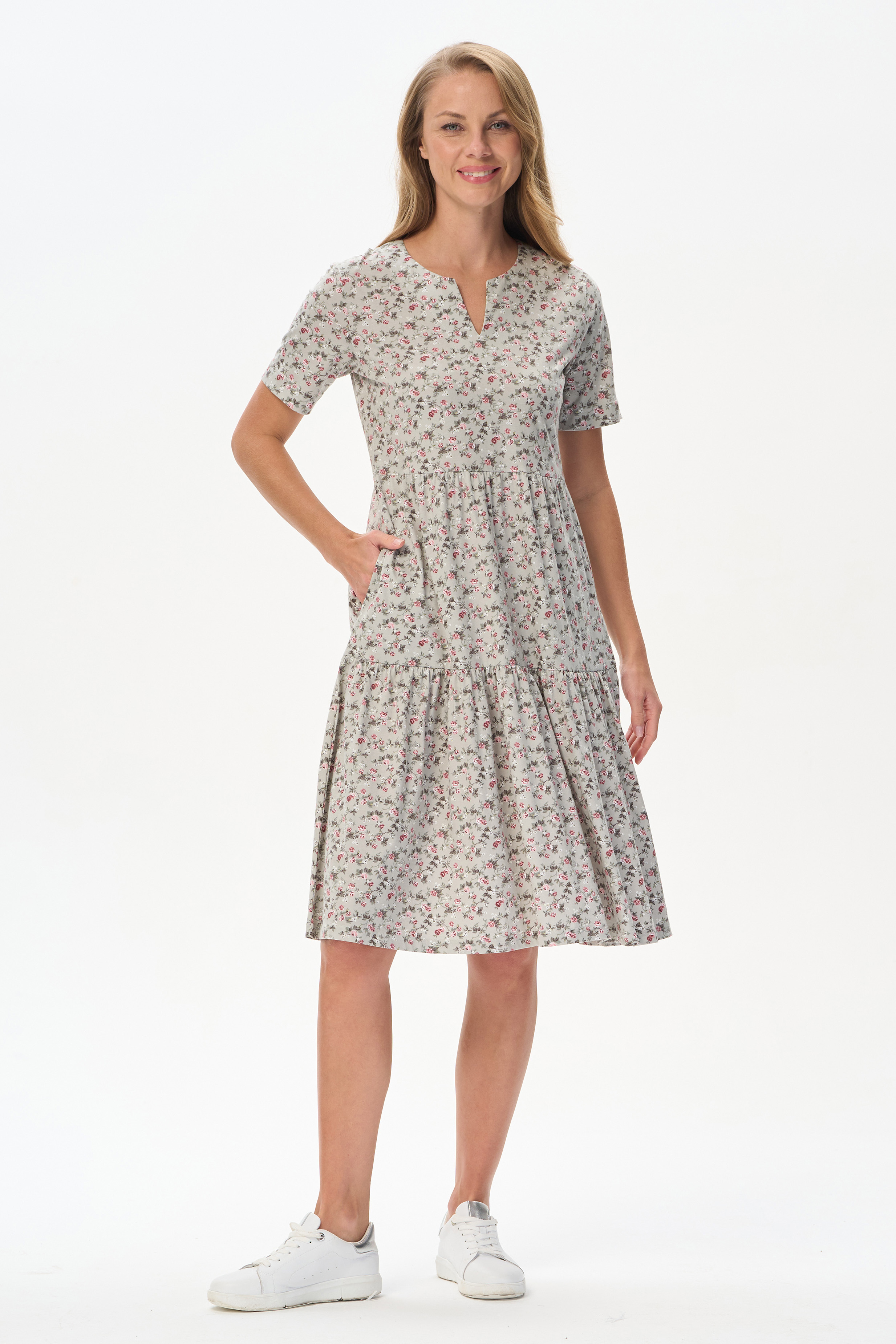 100% хлопок Комфортное ярусное платье, полуприлегающего силуэта из хлопкового полотна. Круглый вырез горловины, втачные короткие рукава, карманы в боковых швах. Рост модели 175 см.