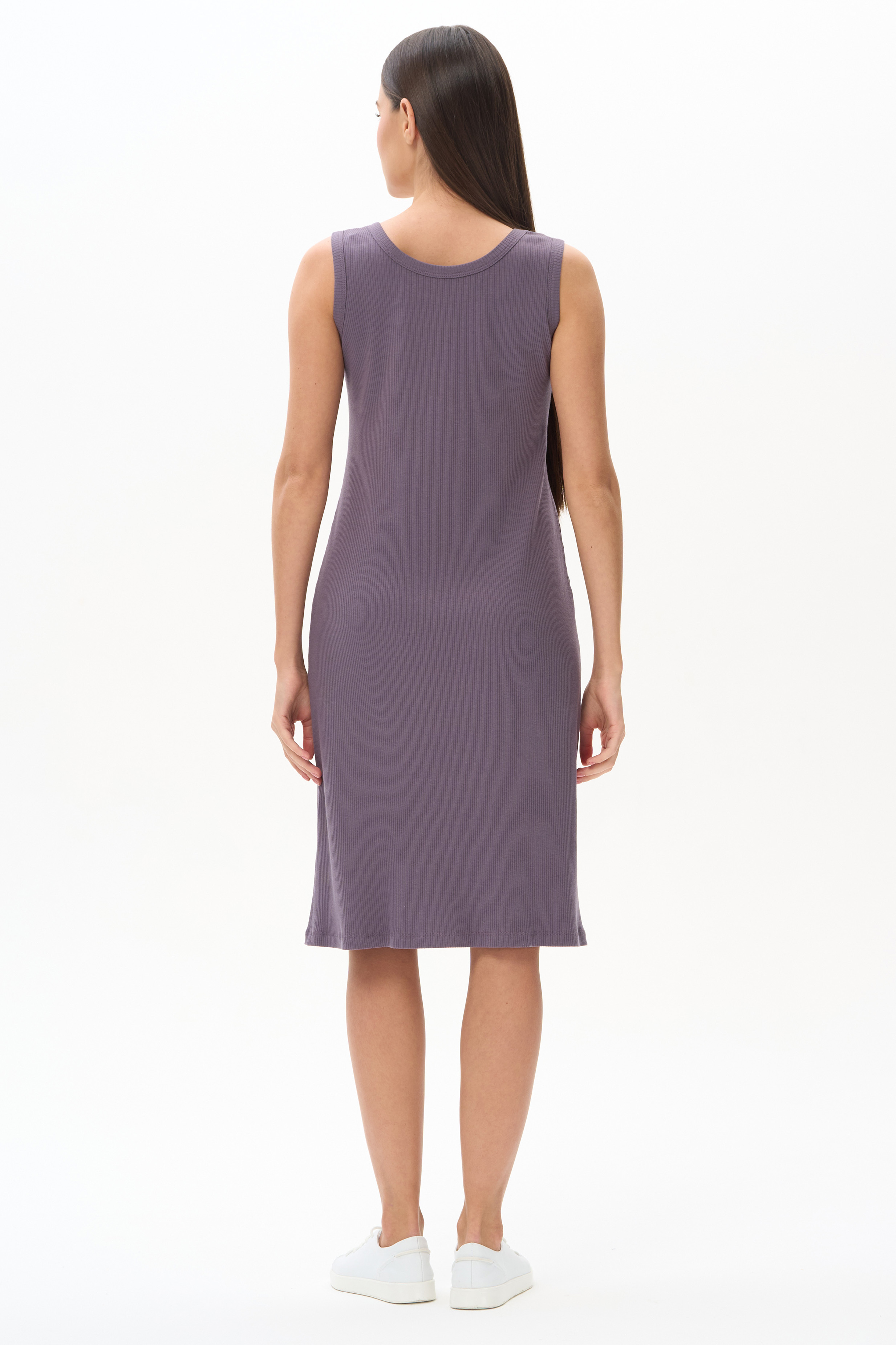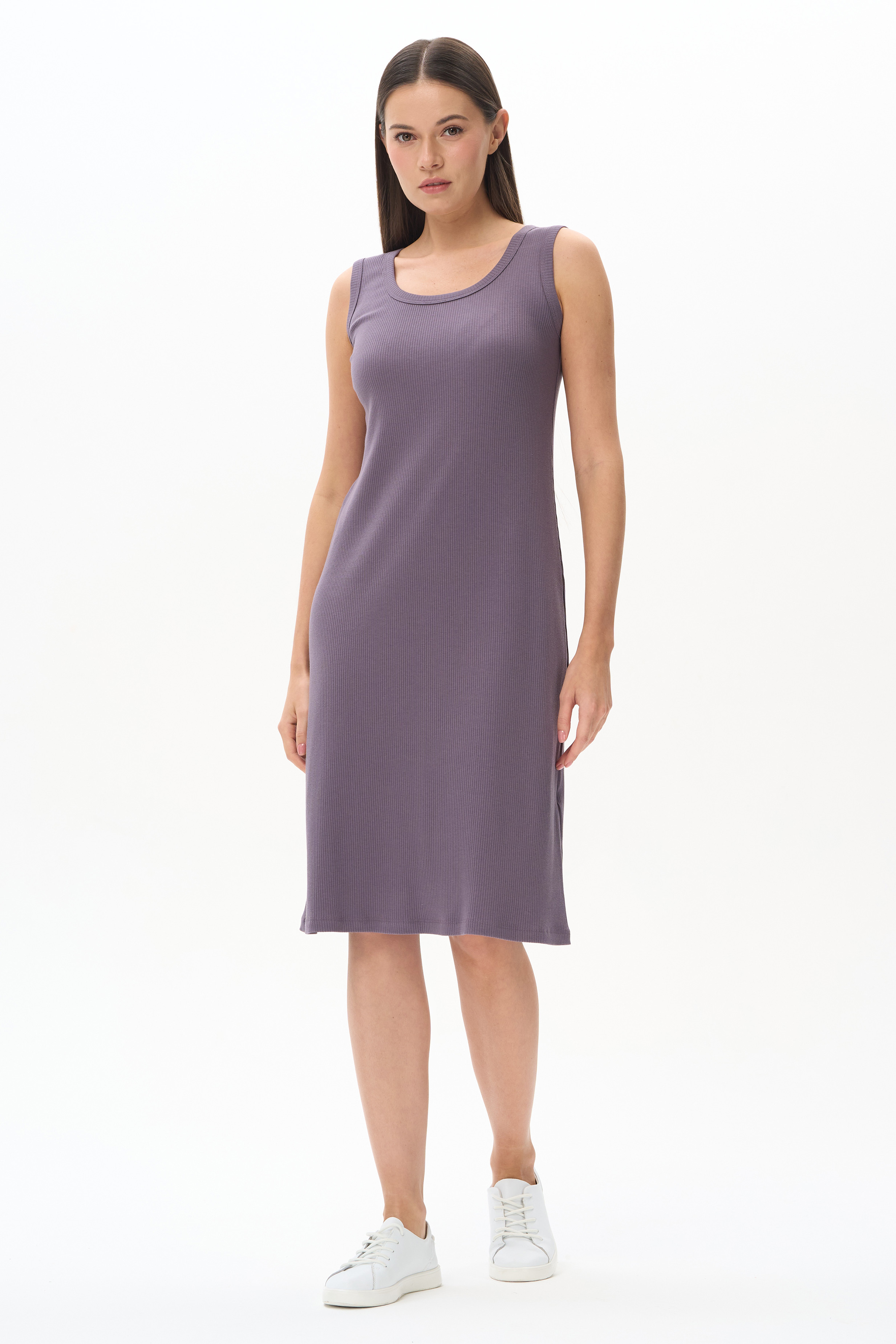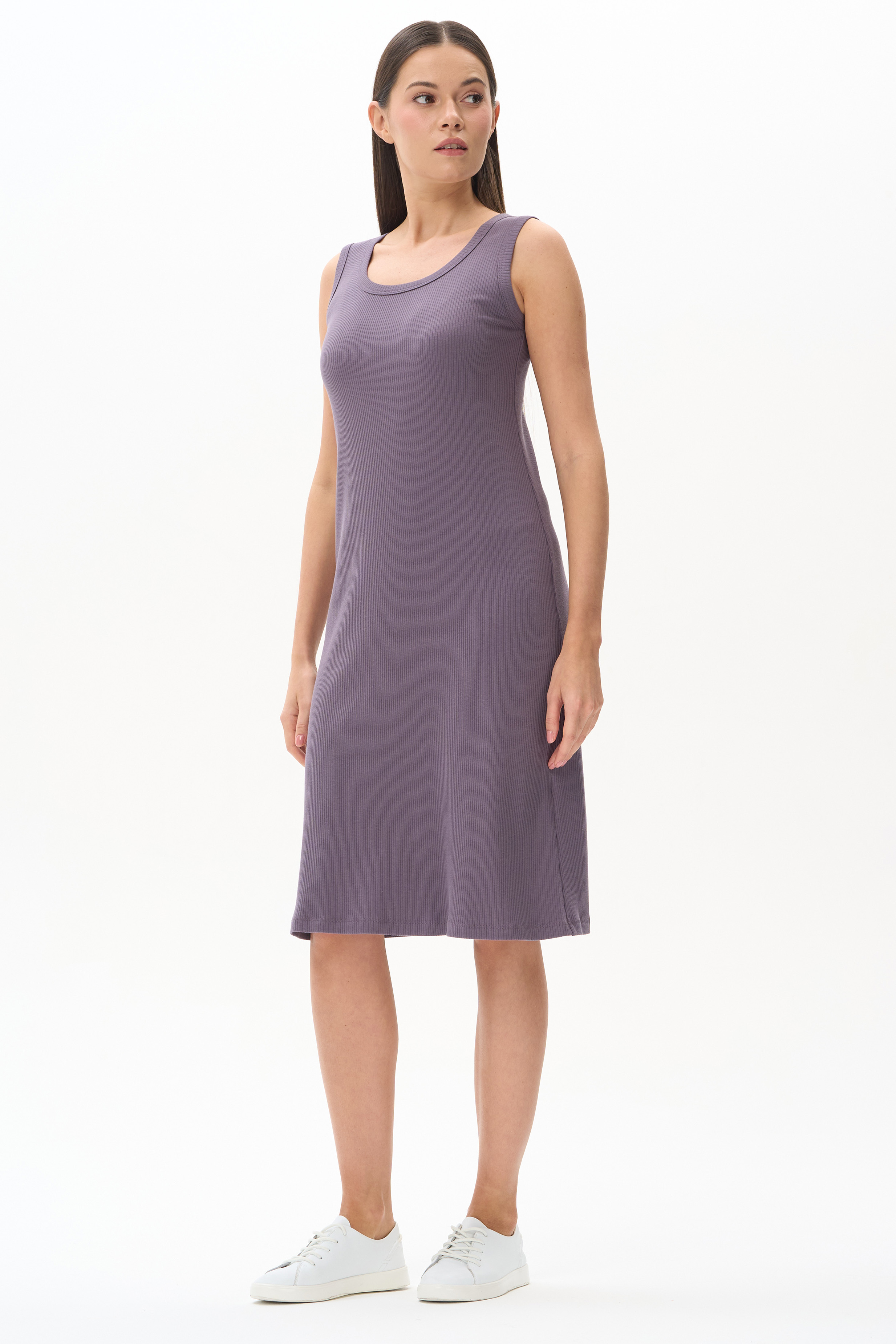 49% хлопок, 49% модал, 2% эластан Платье из фактурного хлопкового полотна с модалом в трендовом фиалковом оттенке. Круглый вырез горловины и проймы обработаны бейкой, длина ниже колена. Комфортная модель, не облегает фигуру, универсальна для города, отдыха и путешествий. Рост модели 175 см