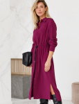 Платье в стиле сафари выполнено из тонкого хлопкового твила. Пышные рукава и пояс на кулисе с регуляторами. Модель дополнена боковыми карманами и застежкой на золотистые пуговицы. Благодаря наличию эластана в составе, изделие сохранит свой безупречный внешний вид в течении долгого времени. Обладает высокой воздухопроницаемостью, благодаря в платье будет комфортно даже в жаркое время года. темно-синий