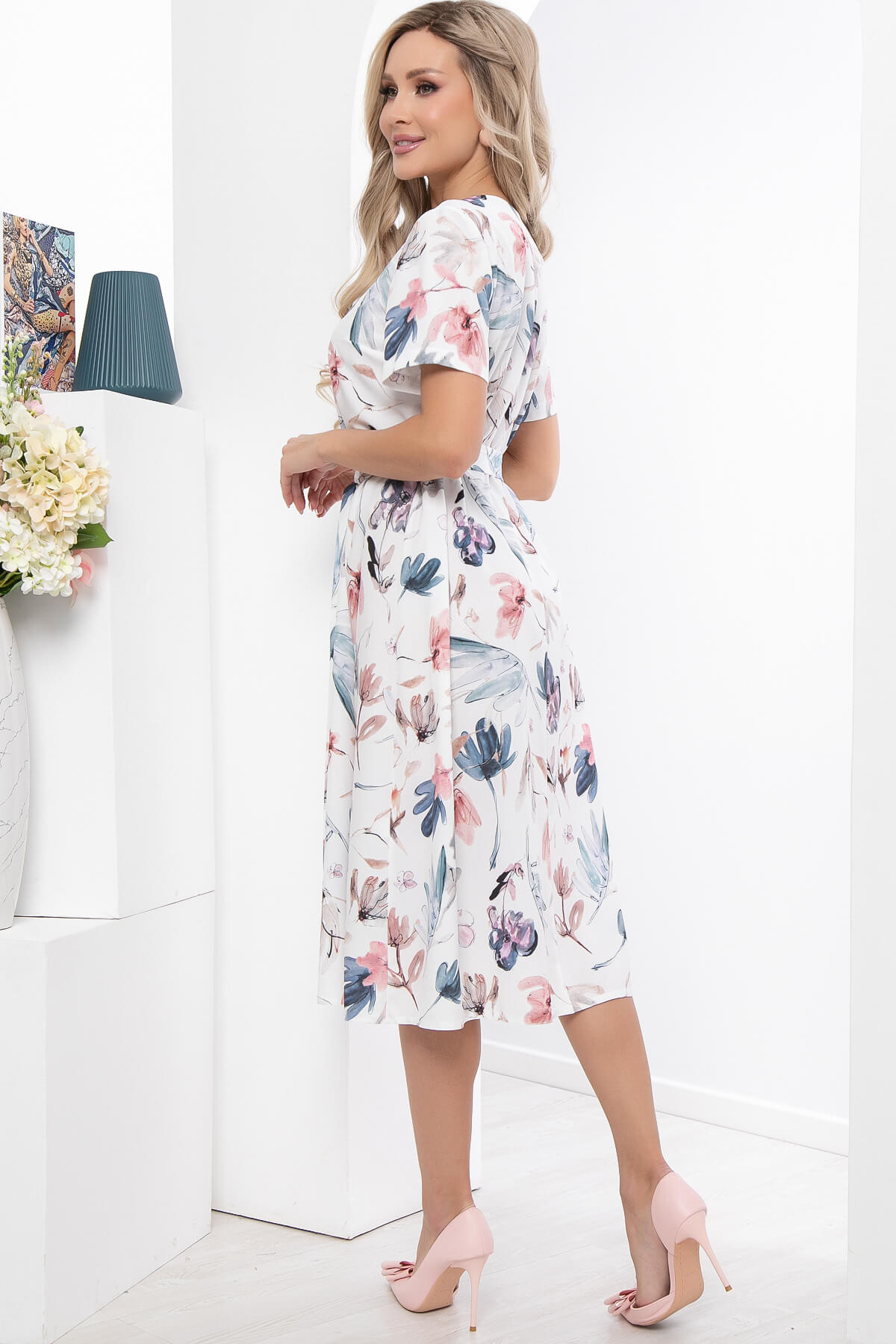 Струящееся платье идеально подчёркивающее Вашу женственность. Платье А-силуэта с красивым V-образный вырезом горловины красиво очертит зону декольте. Рукав укороченный, втачной. Пояс из основной ткани входит в комплект. Платье без подкладки.