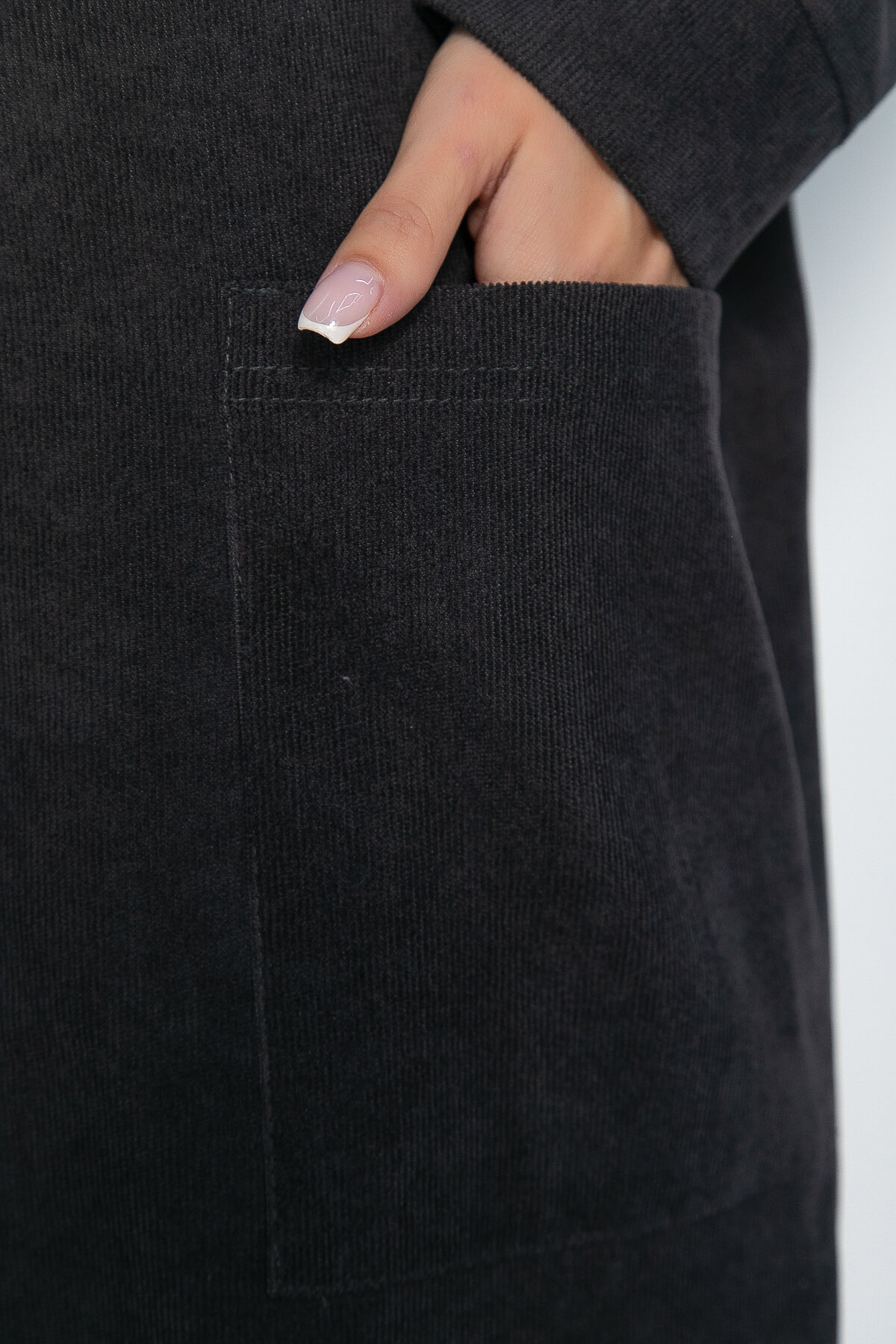 Вельветовое платье в красивом графитовом оттенке идеально как для повседневных дел, так и для особых мероприятий. Сочетание этого платья с высокими сапогами добавит женственности и элегантности вашему образу. Вы также можете дополнить его аксессуарами, чтобы создать запоминающийся образ.