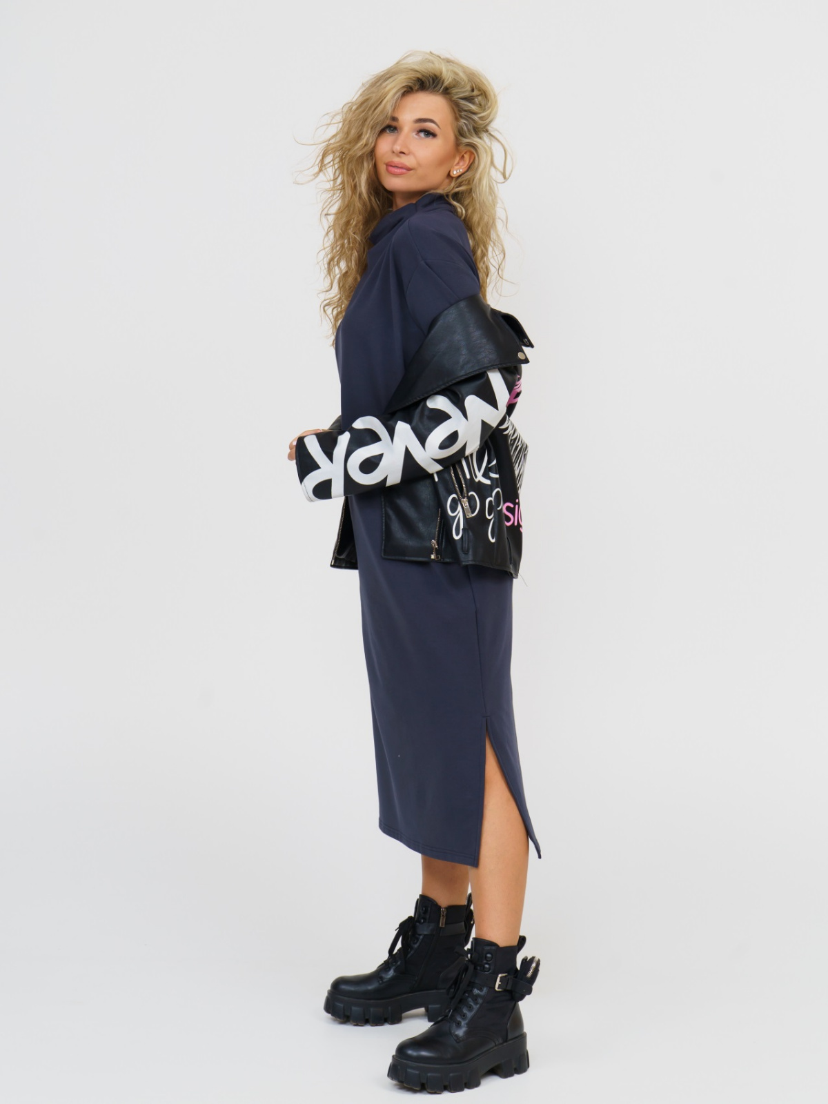 Стильное трикотажное платье из футера 2-хнитки без начёса с воротником стойкой и двумя разрезами. Трикотажное платье получило множество высоких оценок покупателей. Платье женское длинное, что позволяет вам не замерзнуть. Модель в стиле оверсайз прямого свободного кроя подойдет на разные типы фигуры. Длина макси дополнена двумя разрезами снизу для наибольшего комфорта. Рекомендуем сочетать со стеганной жилеткой и кроссовками, кедами, а также с кожаной/меховой косухой или курткой-авиатор с зимними кроссовками и ботинками. К данной модели подойдет любая обувь от кроссовок до сапог.