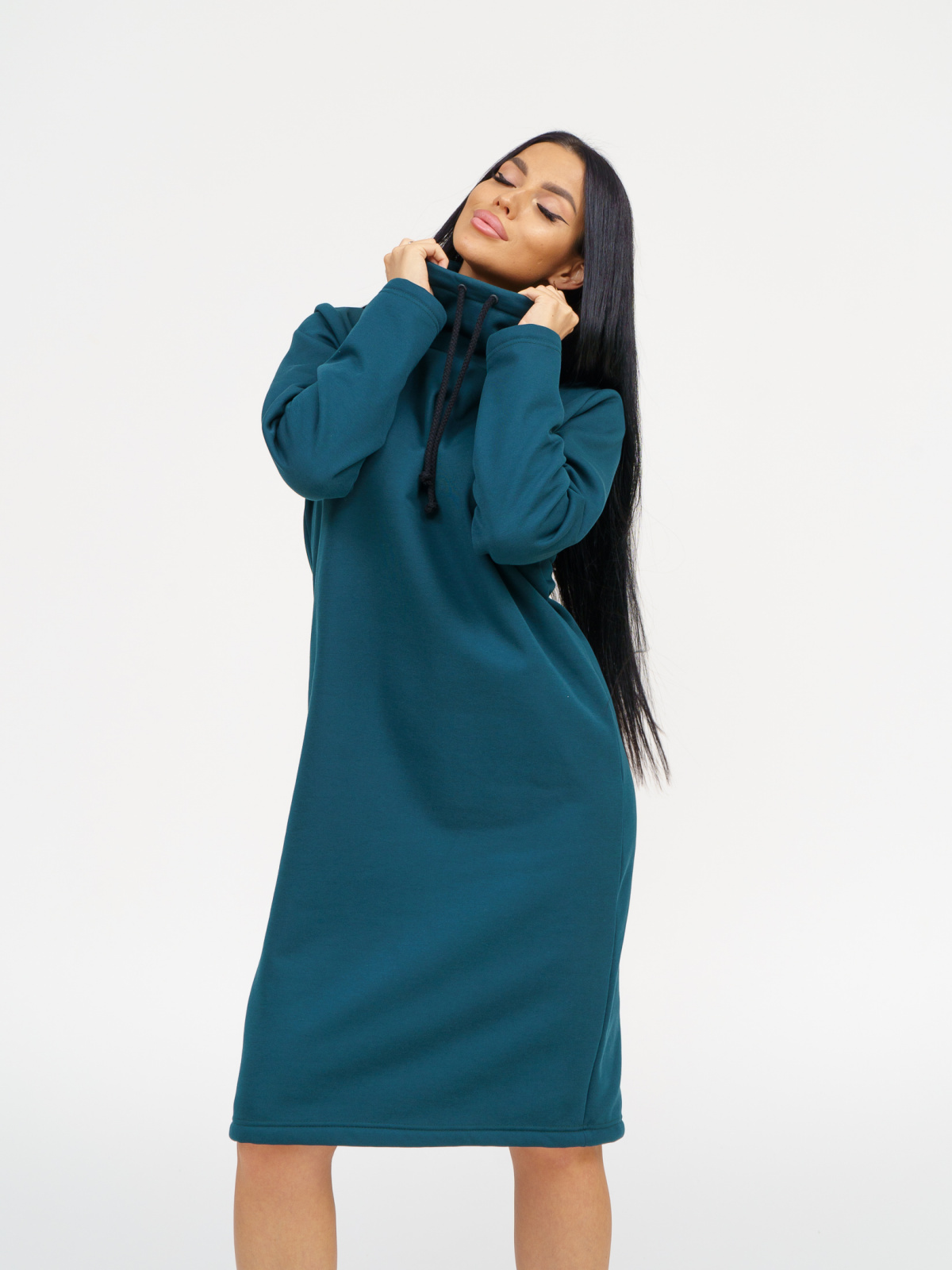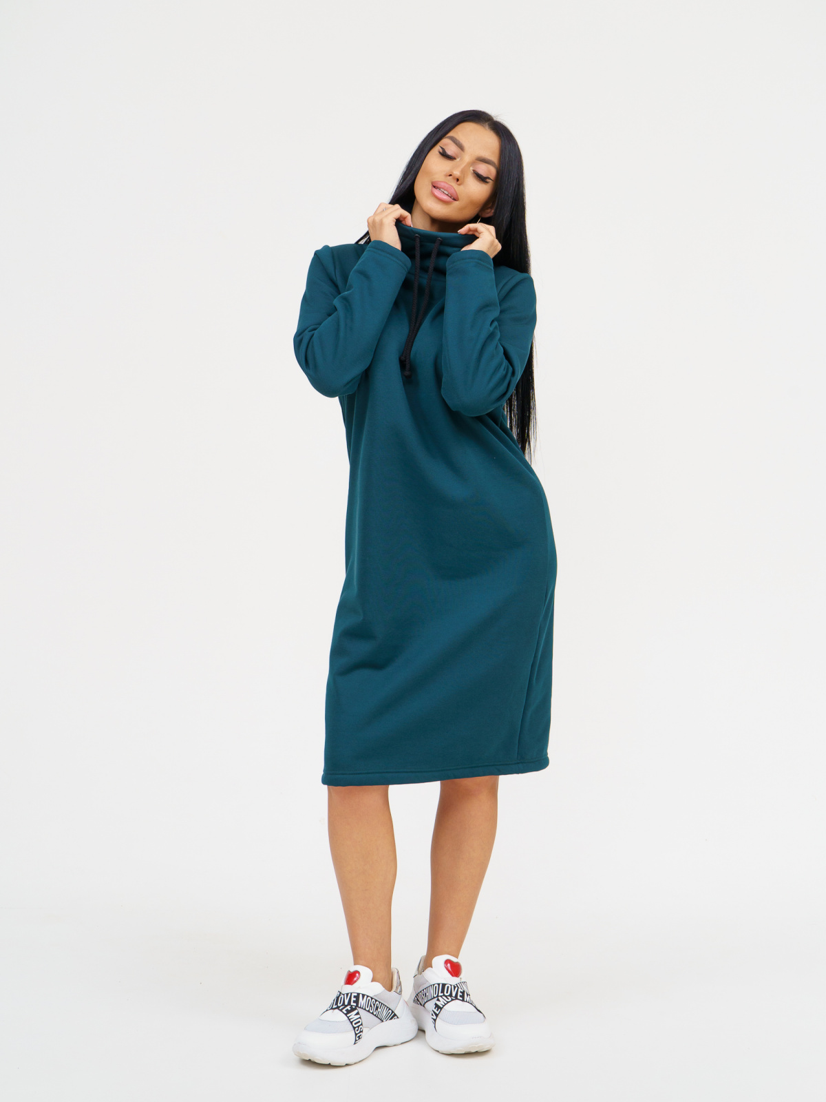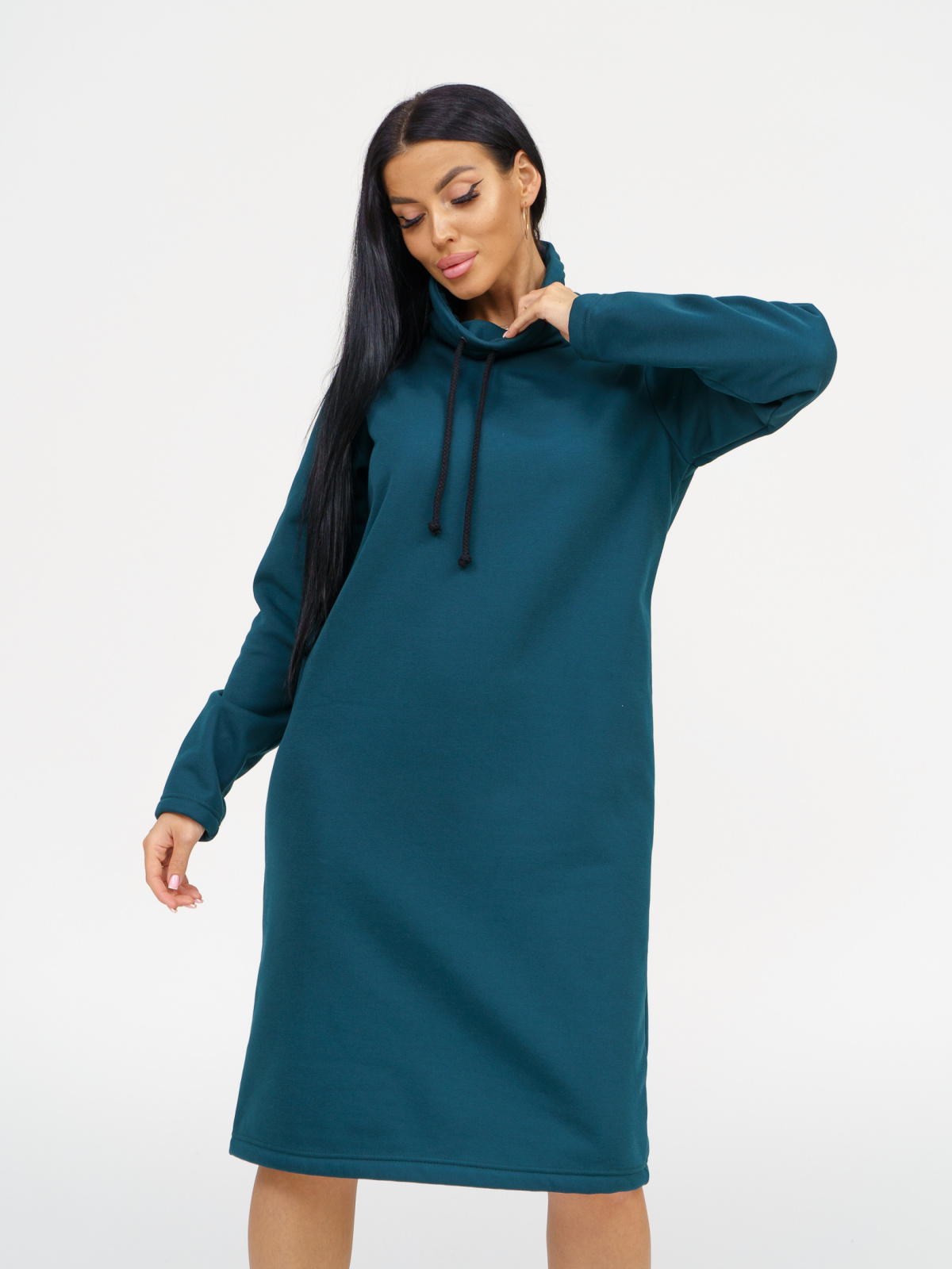 Умеренный oversize не только подчеркнёт хрупкость и изящность фигуры, но и скроет недостатки. Средняя длина платья позволяет одеть его и с длинными сапогами и с короткими ботинками. Идеально для прогулок в городе, поездок и путешествий, загородного отдыха на природе, а так же дома в холодное время года. Модель выполнена из материала интерсофт лицевая часть которой состоит из 100% хлопка, а изнаночная (начёс-барашек) из 100% п/э.