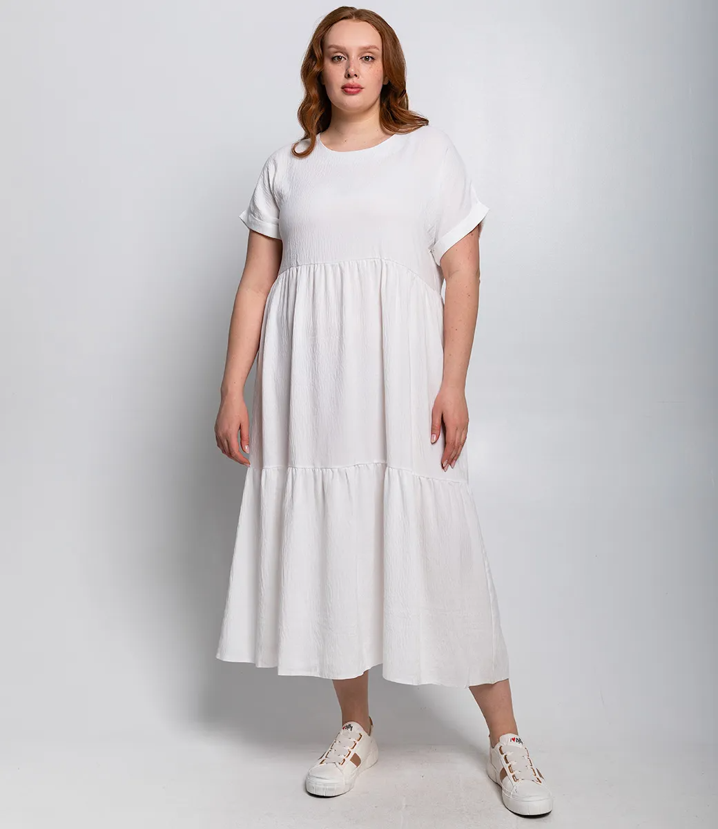Легкое пллатье модной длины миди представленно в модных, ярких, летних оттенках. Данная модель одинакого хорошо подходит как для повседневного стиля, так и для создания вечернего романтического образа.