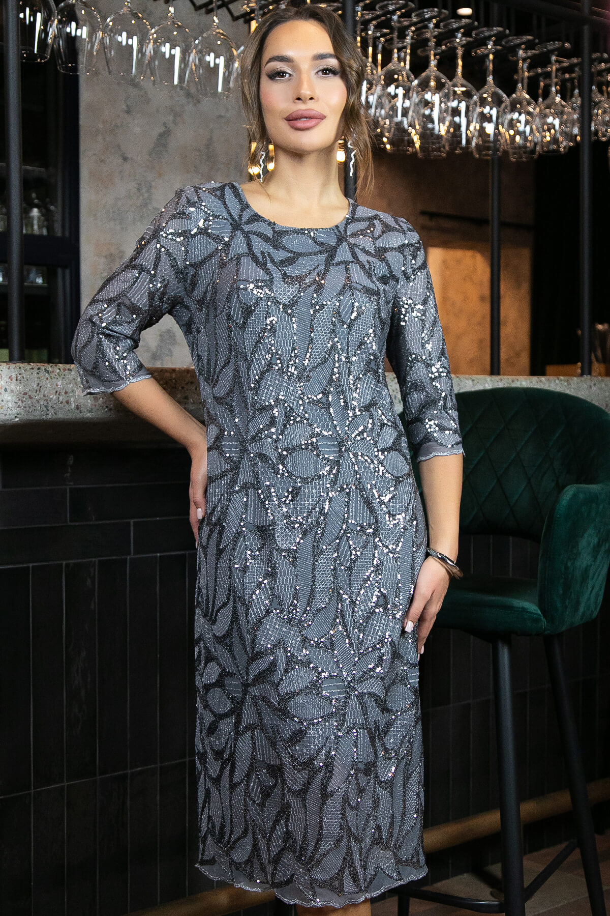 Уникальное платье расшитое пайетками - ваш идеальный выбор для праздников. Особенность этого наряда - узоры из пайеток, которые добавляют неповторимого сияния и блеска. Облегающий силуэт и длина миди подчеркнут ваши формы, делая вас сногсшибательной и привлекательной. Детали, такие как округлый вырез и легкие рукава 3/4 , добавляют изысканный вид. Хорошо стилизуется с туфлями-лодочками.