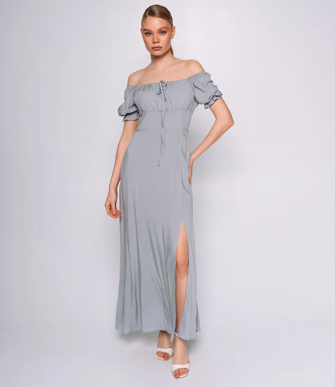 Платье представляет собой изысканную модель в пол с приталенным кроем, выполненным из легкого и дышащего материала, состоящего на 70% из вискозы и 30% из полиэстера. Это идеальное сочетание гарантирует комфортный микроклимат даже в самые жаркие дни. Округлый вырез с затяжкой спереди позволяет регулировать посадку по линии груди, что делает его подходящим для разных типов фигур. Рукава оформлены расклешенными рюшами, что придает образу игривость и легкость. Линия талии подчеркивается, а юбка струится вниз с высоким разрезом спереди, обеспечивая свободу движения и открывая возможность создания стильных образов. Это платье идеально подойдет для летнего гардероба и различных мероприятий, сочетая элегантность и комфорт в одном флаконе. Обратите внимание на насыщенный цвет и фактуру материала, которые полностью соответствуют представленным фотографиям на сайте. Мы понимаем, как важно обеспечить точный выбор размера, поэтому на странице нашего сайта размещена таблица размеров. Воспользовавшись ею, ваши покупательницы смогут без труда обмерить себя и найти идеальный вариант. Предложенная цена на это платье является доступной для оптовых покупателей, что делает его отличным предложением для вашего бизнеса. Подарите своим клиенткам возможность быть стильными и элегантными в этом потрясающем платье, которое прекрасно подчеркнет их индивидуальность и сделает любой образ незабываемым! Рост модели: 168, параметры: 89-63-90.