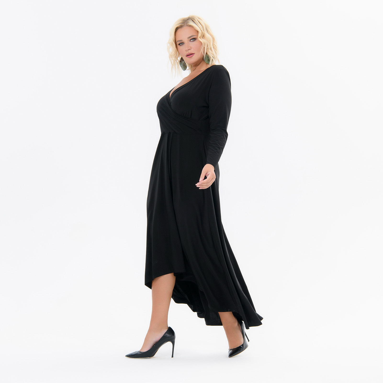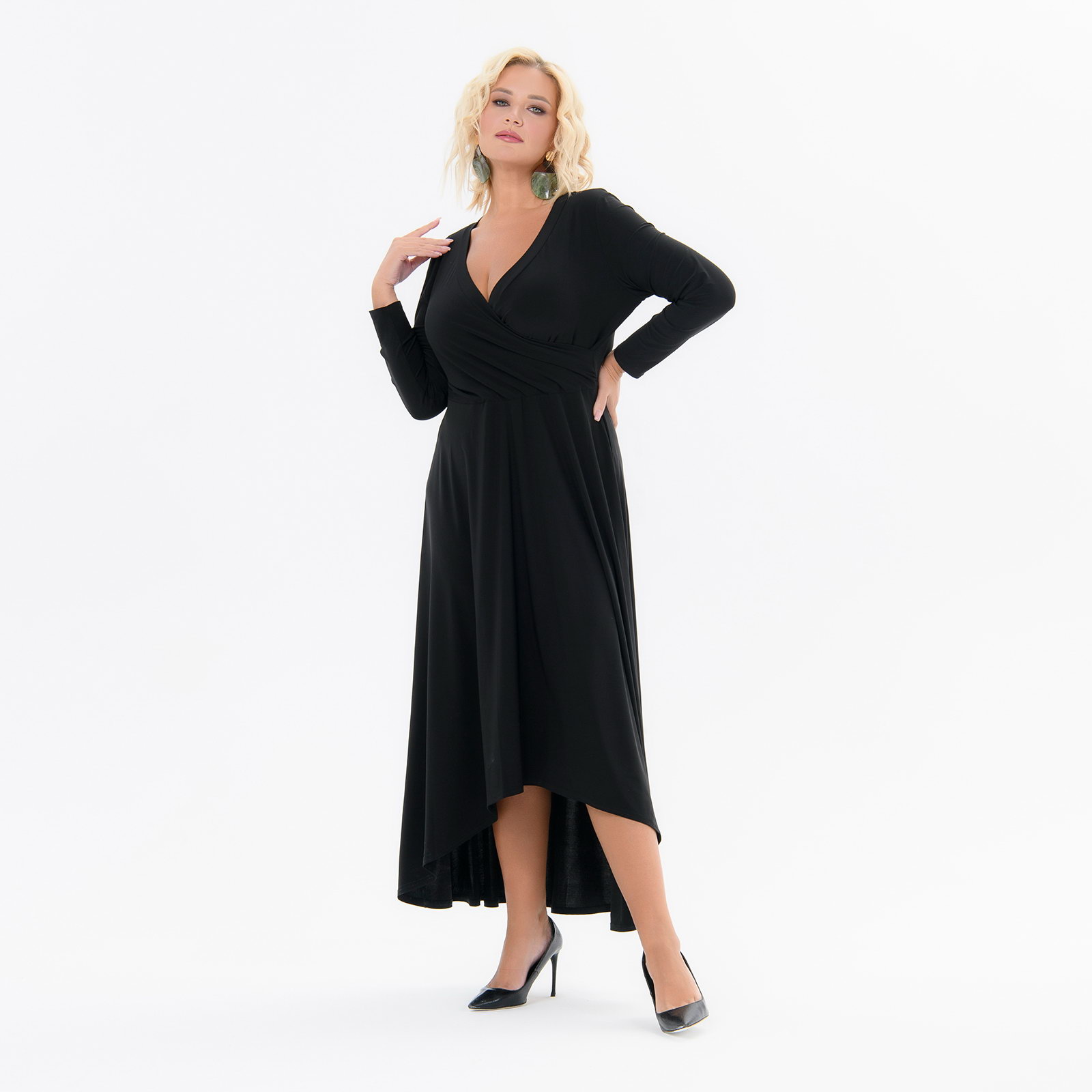 Платье приталенное, с асимметричным низом, лиф с запАхом, черное