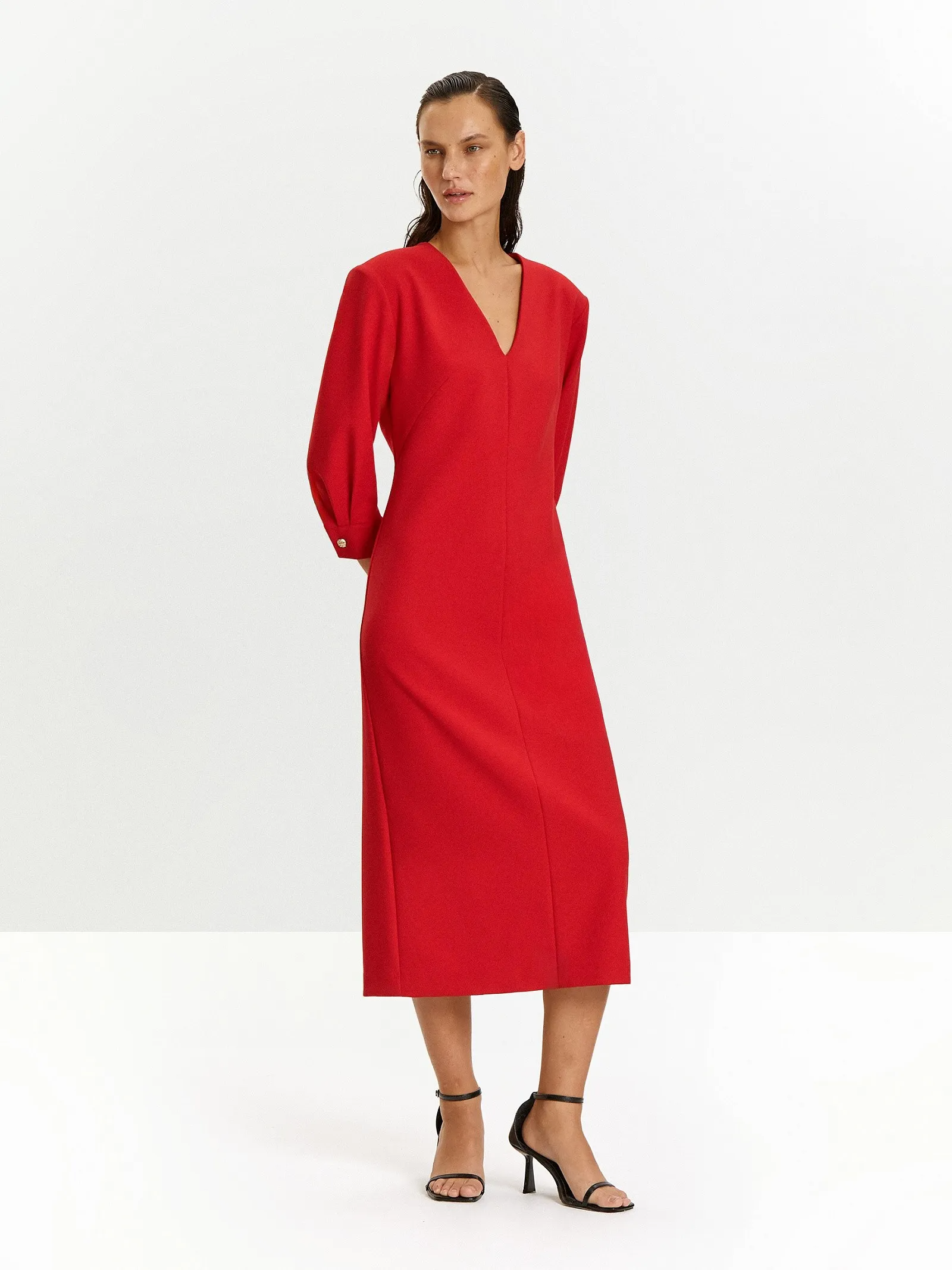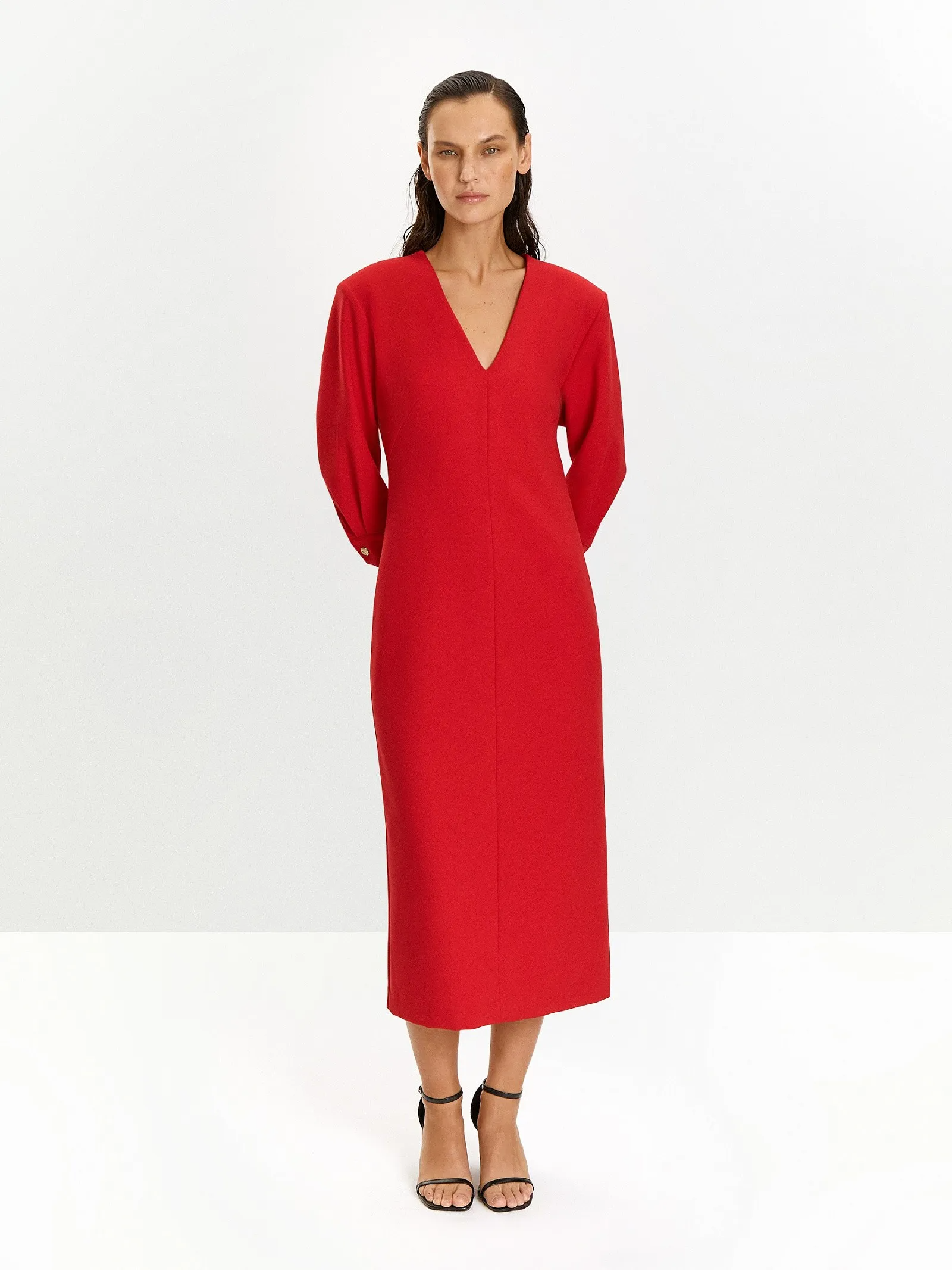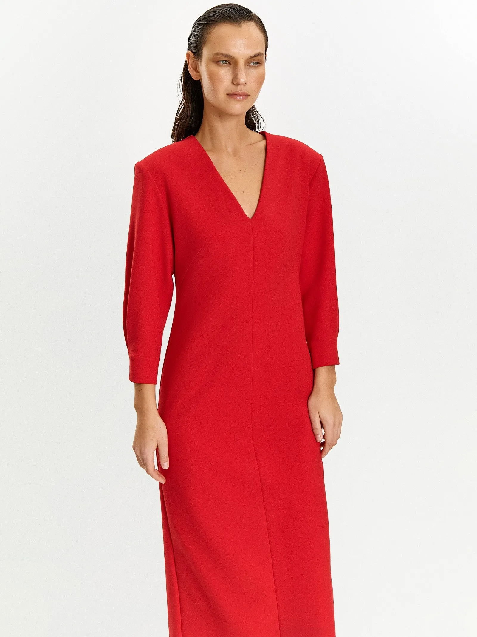 Универсальное платье в алом цвете незаменимо, когда день богат на рабочие и личные планы. Оно может быть и коктейльно-выходным, и деловым, и повседневным. Это яркая современная классика на любой случай.