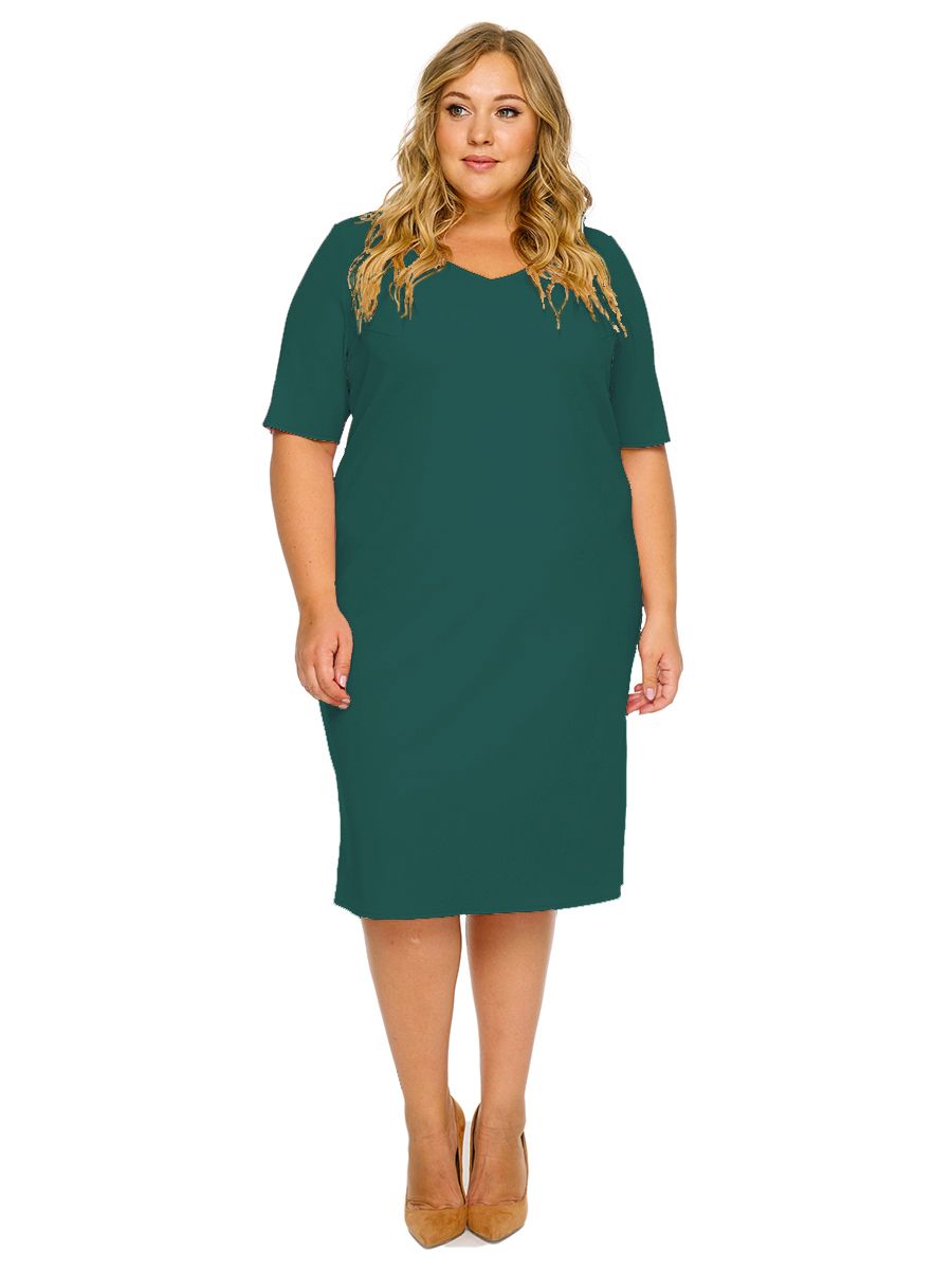 Платье прямое с коротким рукавом, креп зеленый