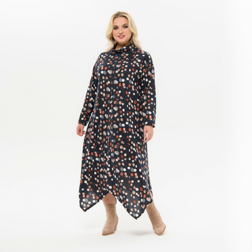 Мультиколор Платье свободного силуэта, слегка расклешенное к низу, из искусственной ангоры. Линия плеча спущена, рукав длинный.