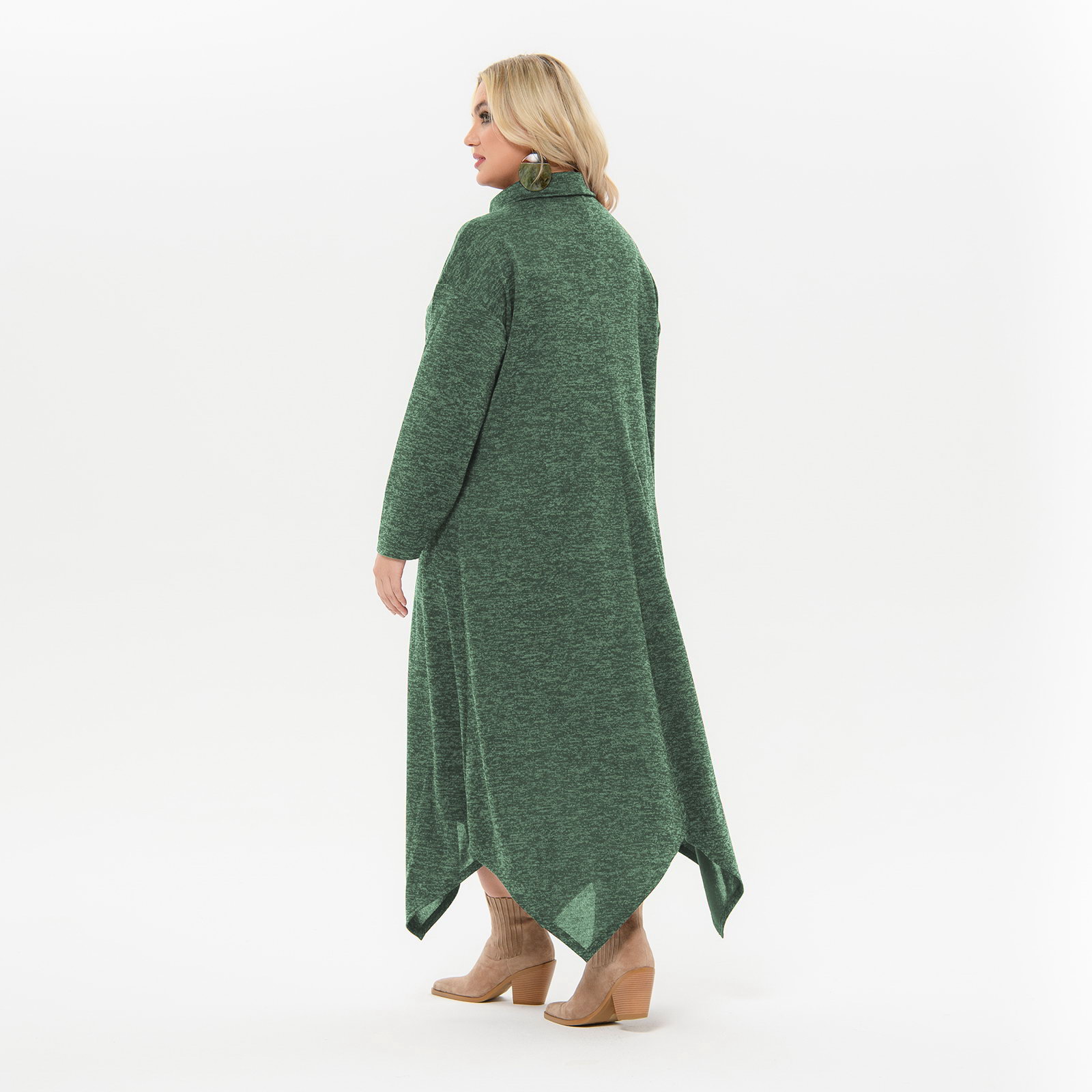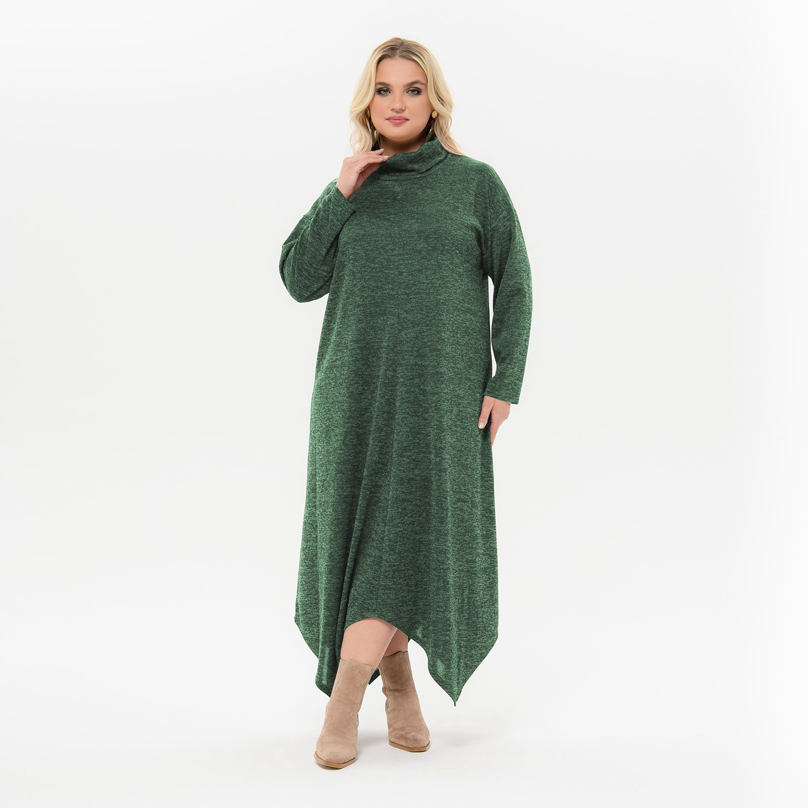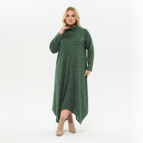 Платье с фигурной линией низа, из джерси-меланжа, зеленое