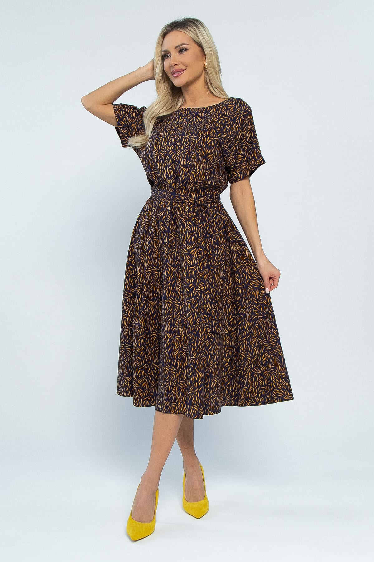 Принт: мелкие листочки жёлтого цвета.