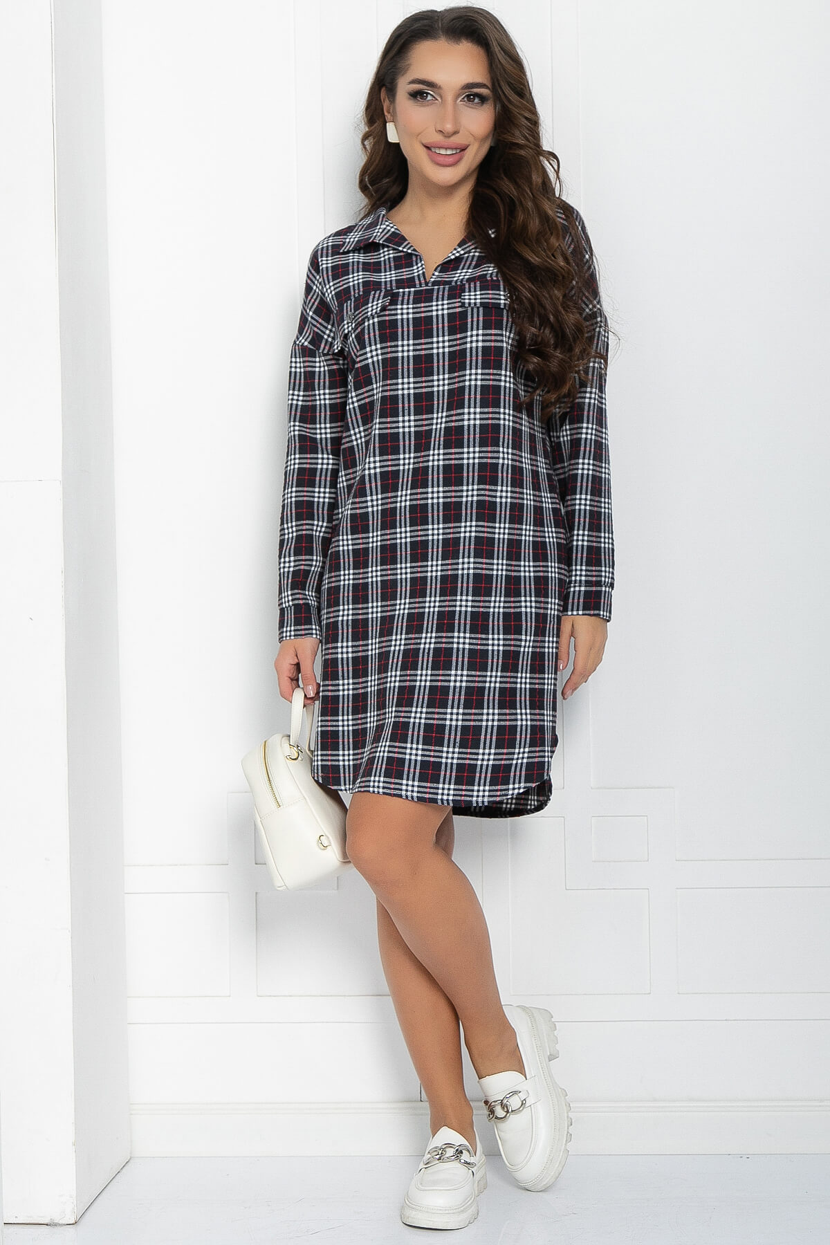 Стильное и комфортное платье - рубашка в клетку на каждый день. Модель можно носить с поясом из основной ткани. Отложной воротничок, рукав длинный со спущенным плечевым швом, на манжете. На груди имитация карманов. В таком свободном платье в клетку удобно гулять с ребенком или просто проводить активный отдых с друзьями.