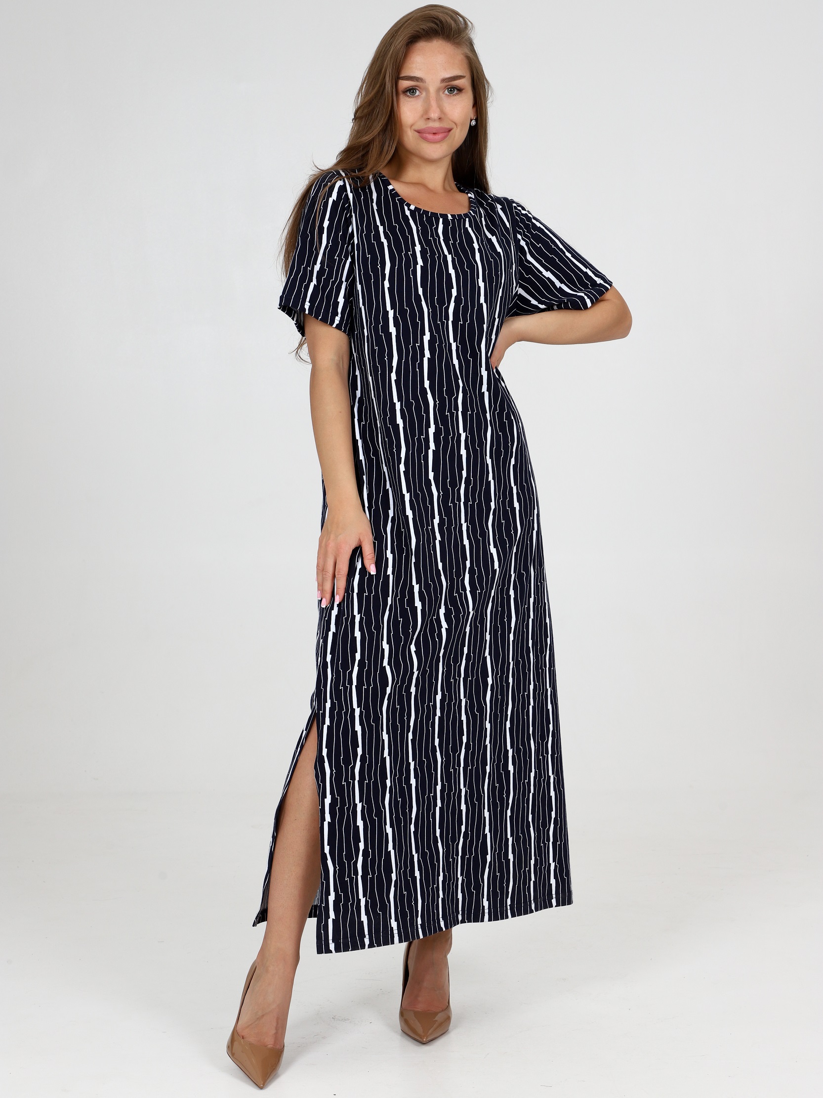 Длинное женское платье с разрезами по бокам платье из хлопка - идеальный выбор на лето. Платье с принтом изготовлено из  натурального мягкого трикотажа.  Материал приятен к телу, хорошо дышит и не вызывает раздражения кожи, поэтому хлопковые платья часто выбирают для буднего дня и отдыха на природе.  Длинное платье из хлопка - это элегантная и удобная модель, которая идеально подходит для повседневного образа или особых случаев. Вы можете носить его как самостоятельно, так и в сочетании с кардиганом или джинсовой курткой для создания более слоистого образа.