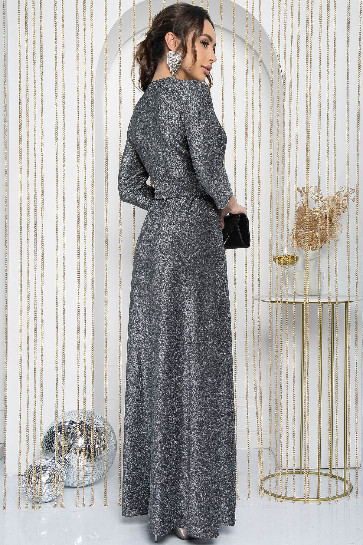 Платье с блестящим люрексом — это идеальный выбор для любого торжественного мероприятия! Оно создаст незабываемый образ и привлечёт внимание окружающих. Изящный V-образный вырез подчеркивает линию декольте, а пояс акцентирует талию, добавляя вашей фигуре утончённости и грациозности. Верхняя часть платья выполнена на запах, что создаёт романтичный силуэт. Юбка платья плавно расширяется к низу, что придаёт вашему образу динамичность и женственность. В этом платье вы будете блистать на любом мероприятии, будь то вечерние гулянья или новогодняя вечеринка. Талия отрезная.