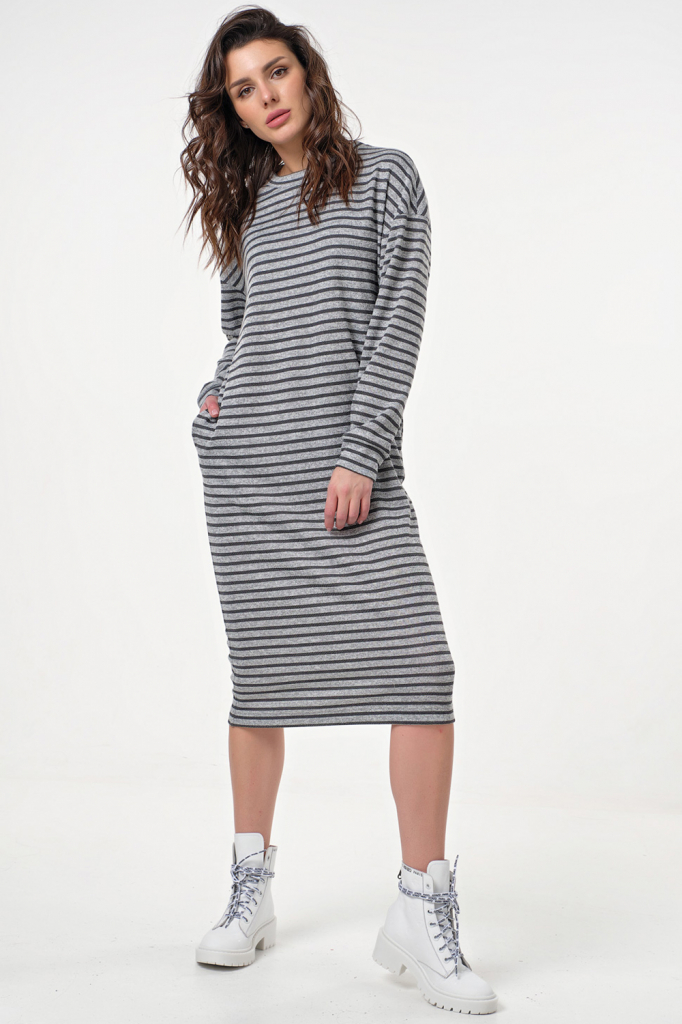 ст. цена1901руб.! Платье спортивное миди в полоску на сером