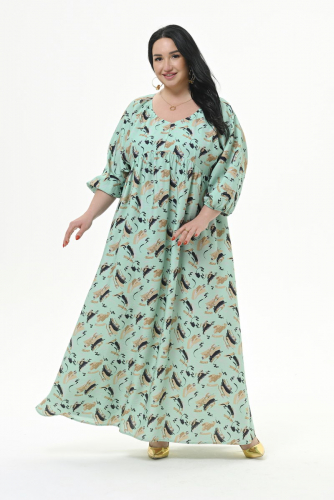 Роскошное, свободное, длинное платье  из фактурной плательной вискозы. По переду V-вырез "мягкой" формы.На уровне линии груди плавный подрез,