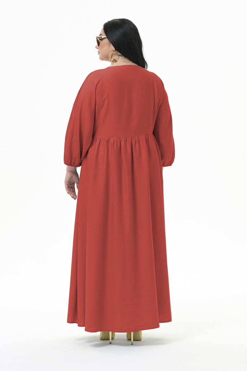 паприка Роскошное, свободное, длинное платье  из фактурной плательной вискозы. По переду V-вырез "мягкой" формы.На уровне линии груди плавный подрез,