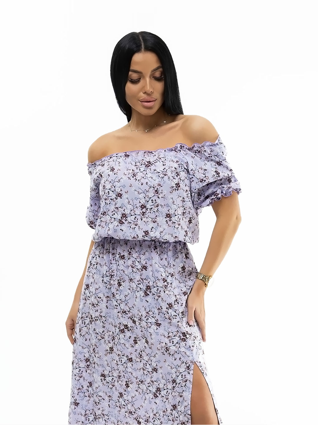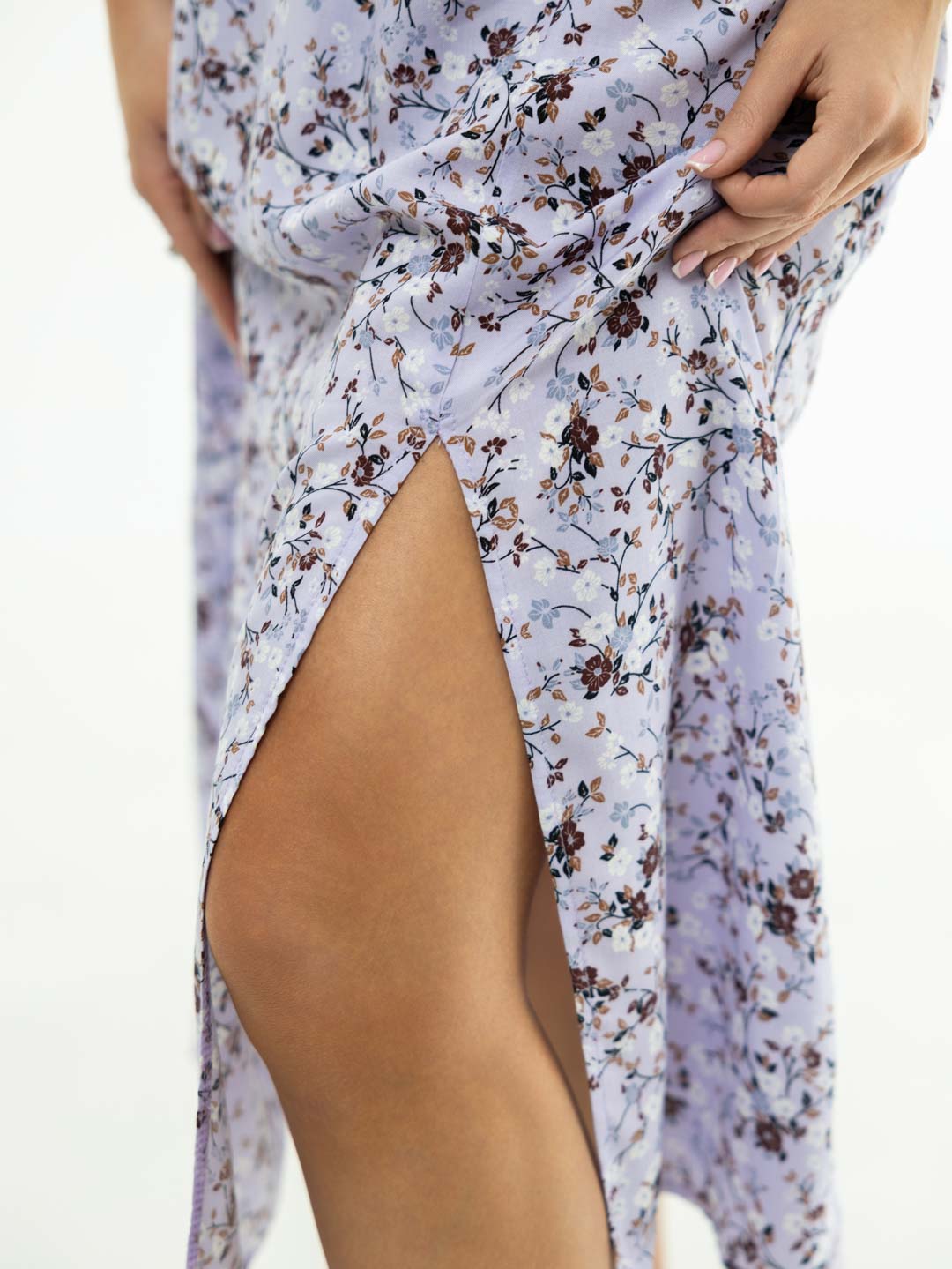 Платье женское с резинкой по горловине и талии, рукав фонарик, юбка с высоким разрезом по ноге, длиной миди. Женское платье из штапеля незаменимо в летнее, весеннее и осеннее время года. Такая модель смотрится прекрасно на любой фигуре, скрывает недостатки и подчеркивая талию. Платье легко комбинируется с любой другой одеждой: косухой, джинсовкой, тренчем.