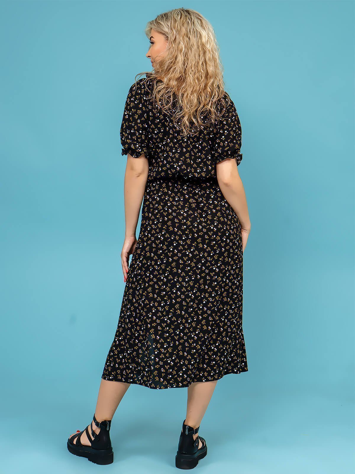 Платье женское с резинкой по горловине и талии, рукав фонарик, юбка с высоким разрезом по ноге, длиной миди. Женское платье из штапеля незаменимо в летнее, весеннее и осеннее время года. Такая модель смотрится прекрасно на любой фигуре, скрывает недостатки и подчеркивая талию. Платье легко комбинируется с любой другой одеждой: косухой, джинсовкой, тренчем.