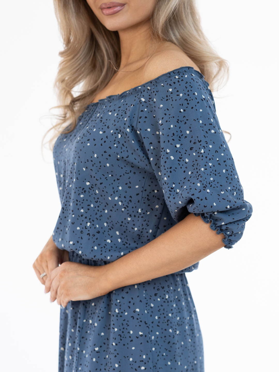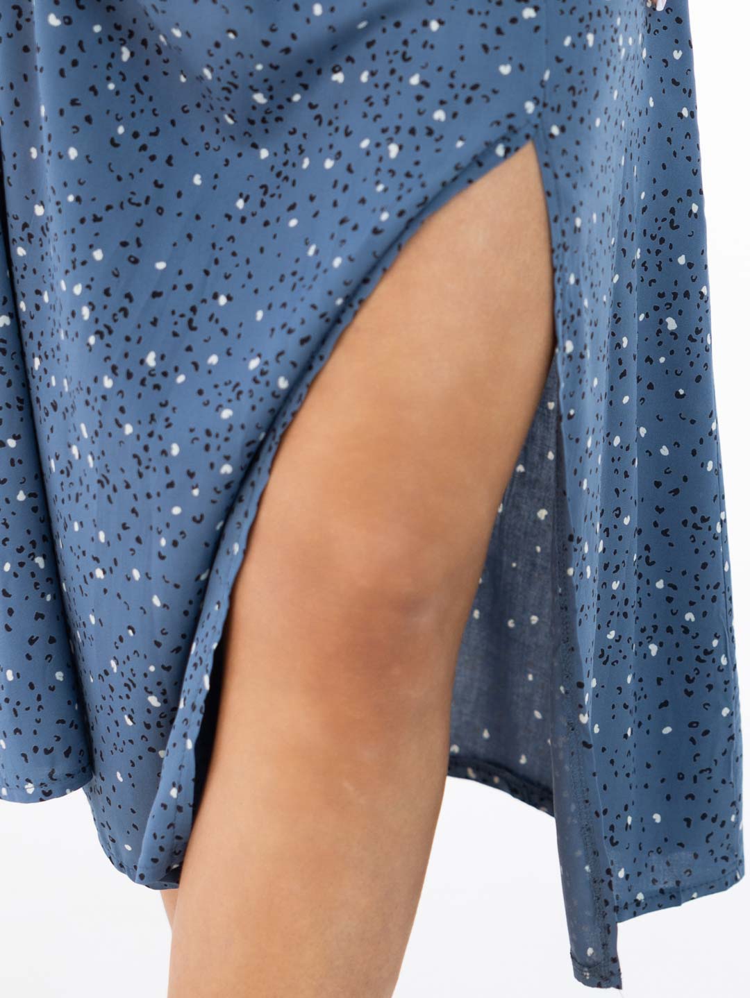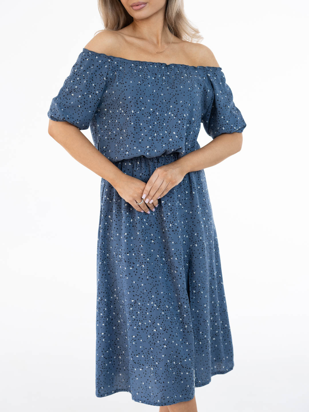 Платье женское с резинкой по горловине и талии, рукав фонарик, юбка с высоким разрезом по ноге, длиной миди. Женское платье из штапеля незаменимо в летнее, весеннее и осеннее время года. Такая модель смотрится прекрасно на любой фигуре, скрывает недостатки и подчеркивая талию. Платье легко комбинируется с любой другой одеждой: косухой, джинсовкой, тренчем.