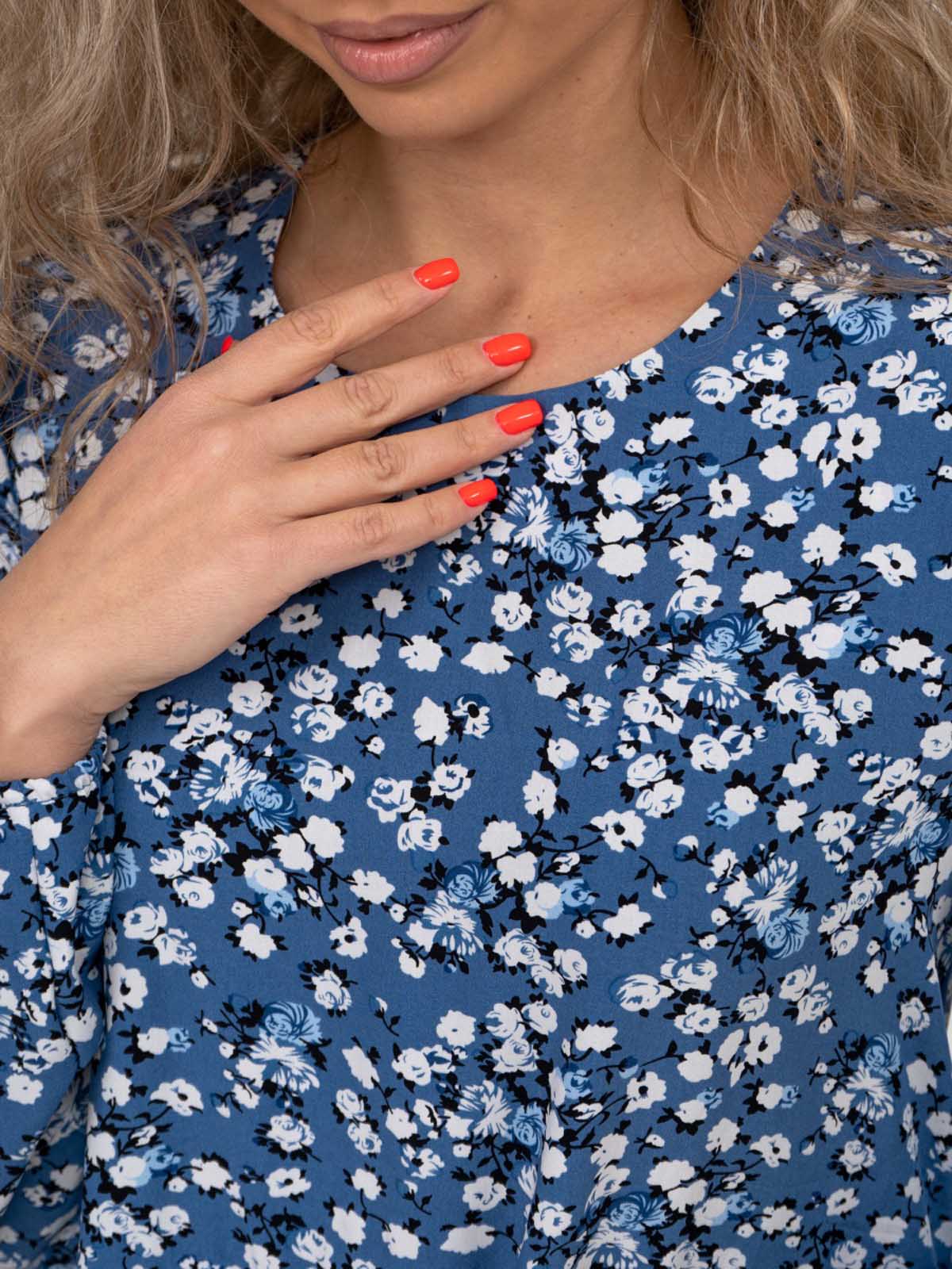 Платье женское полуприлегающего силуэта, с О-образной горловиной. Длина изделияя чуть выше колена. Рукав свободный, длиной до запястья. Платье легкое, из штапеля идеально подходит на каждый день.