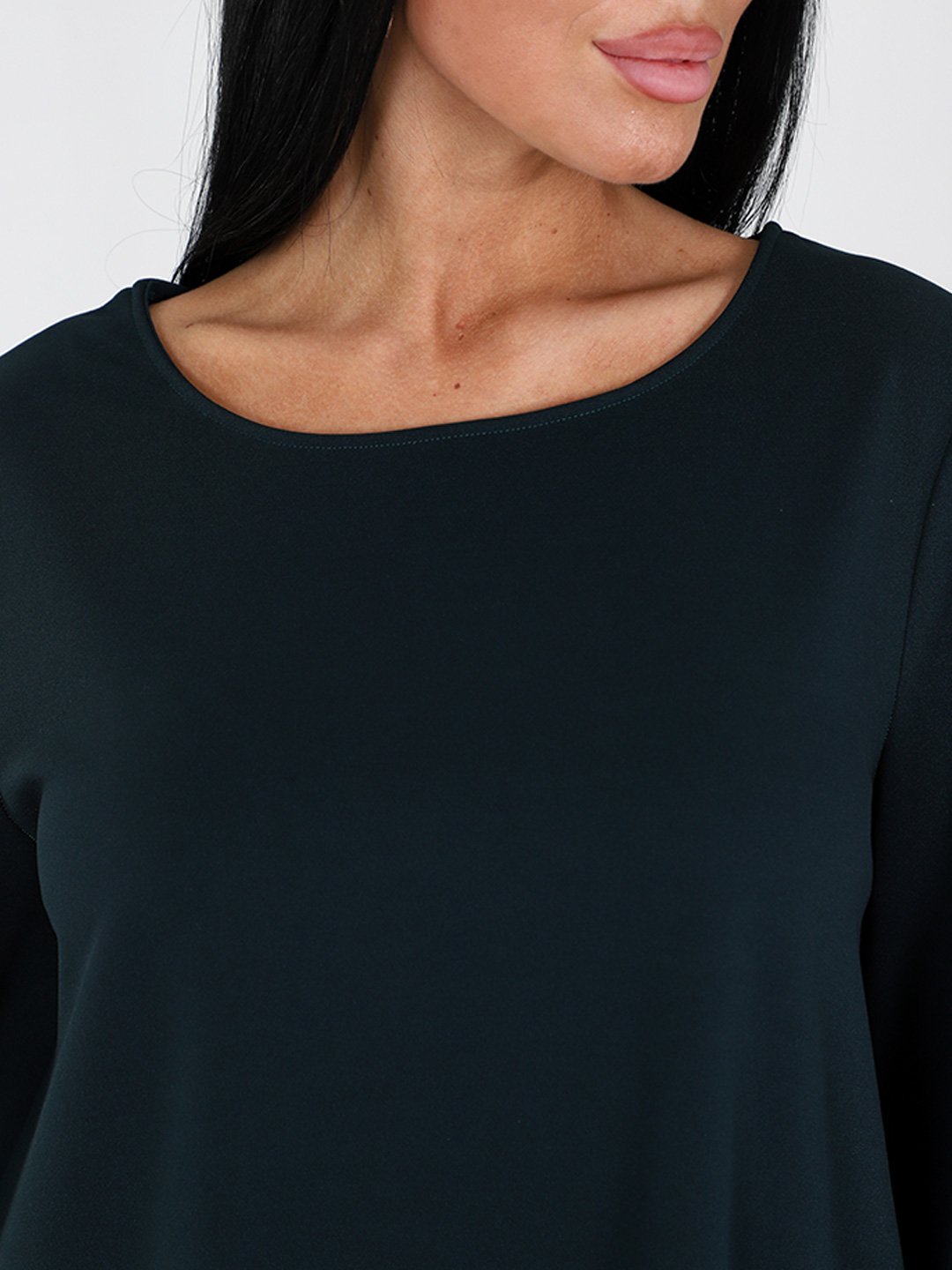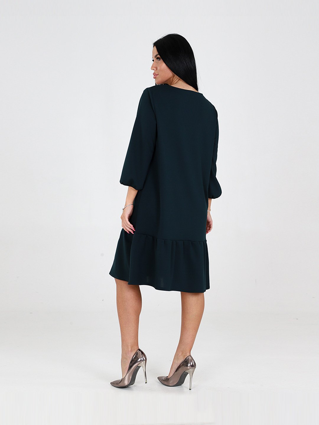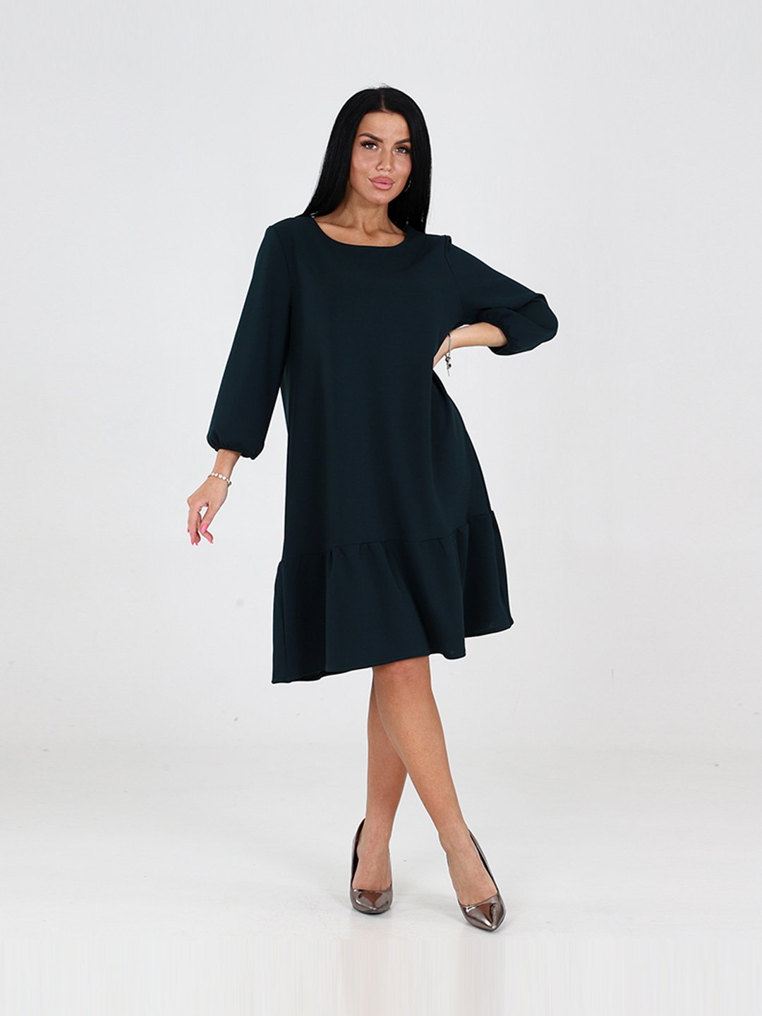 Платье женское свободного силуэта, вырез горловины О-образный, рукава 3/4 присборены. Костюмная ткань средней плотности, почти не мнется.