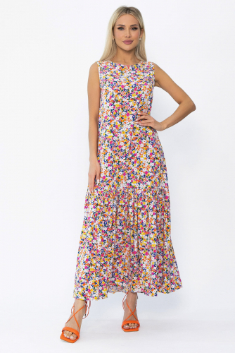 Платье из струящейся ткани приталенного силуэта. Кареобразный вырез изящно подчеркивает линию декольте. Юбка клешенная с двумя разрезами спереди. В таком платье вы точно будете в центре внимания. Оно достаточно сдержанно, но в то же время наполнено акцентными деталями, что идеально подчеркнет вашу красоту. Изделие имеет декоративный бантик с жемчугом. По талии на резинке. В комплекте пояс из основной ткани.