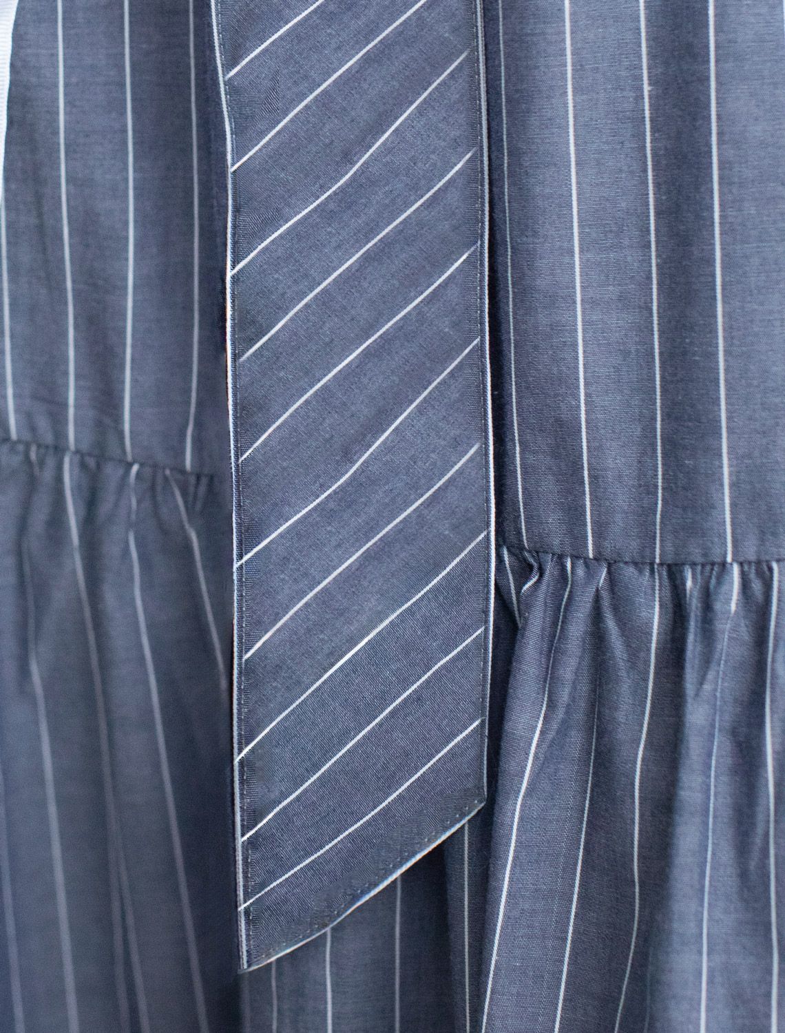 Платье в полоску А-силуэта с поясом из легкого хлопкового поплина D22.264 серо-синий