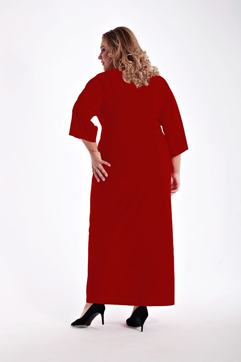 Марсала Платье длинное из трикотажа. V-образный вырез горловины, отрезное под грудью, широкий цельнокроенный рукав. По нижней части платья подклад до разреза из основной ткани. По центру юбки переда- разрез.