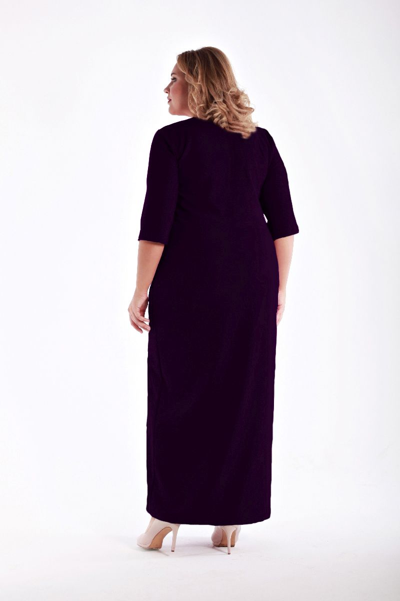 Бургунди Вечернее платье из крепа с эластаном цвета бургунди. Верхняя часть отрезная по линии талии. По переду оригинальная драпировка. На уровне левого рельефа передней части юбки разрез. Рукав 3/4.