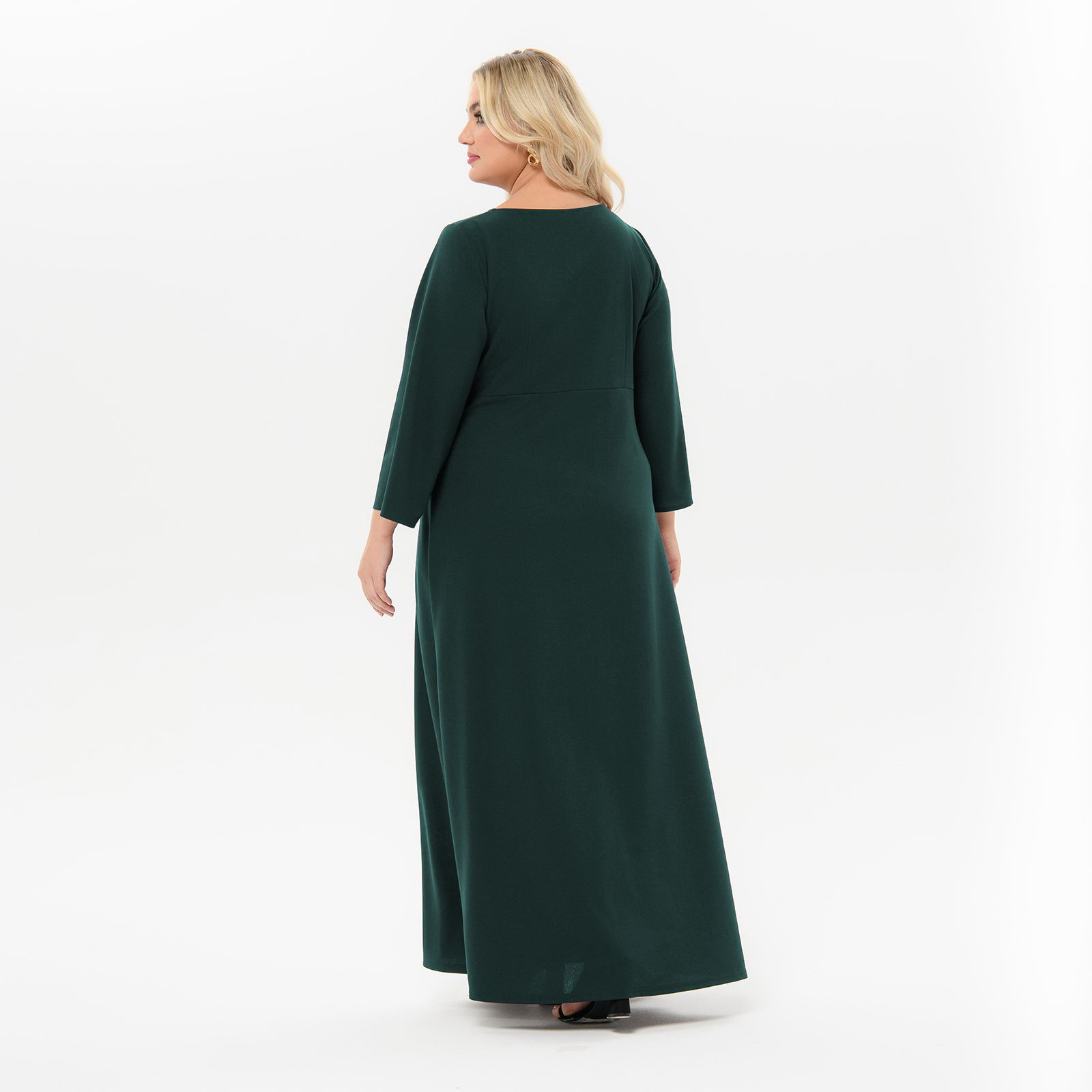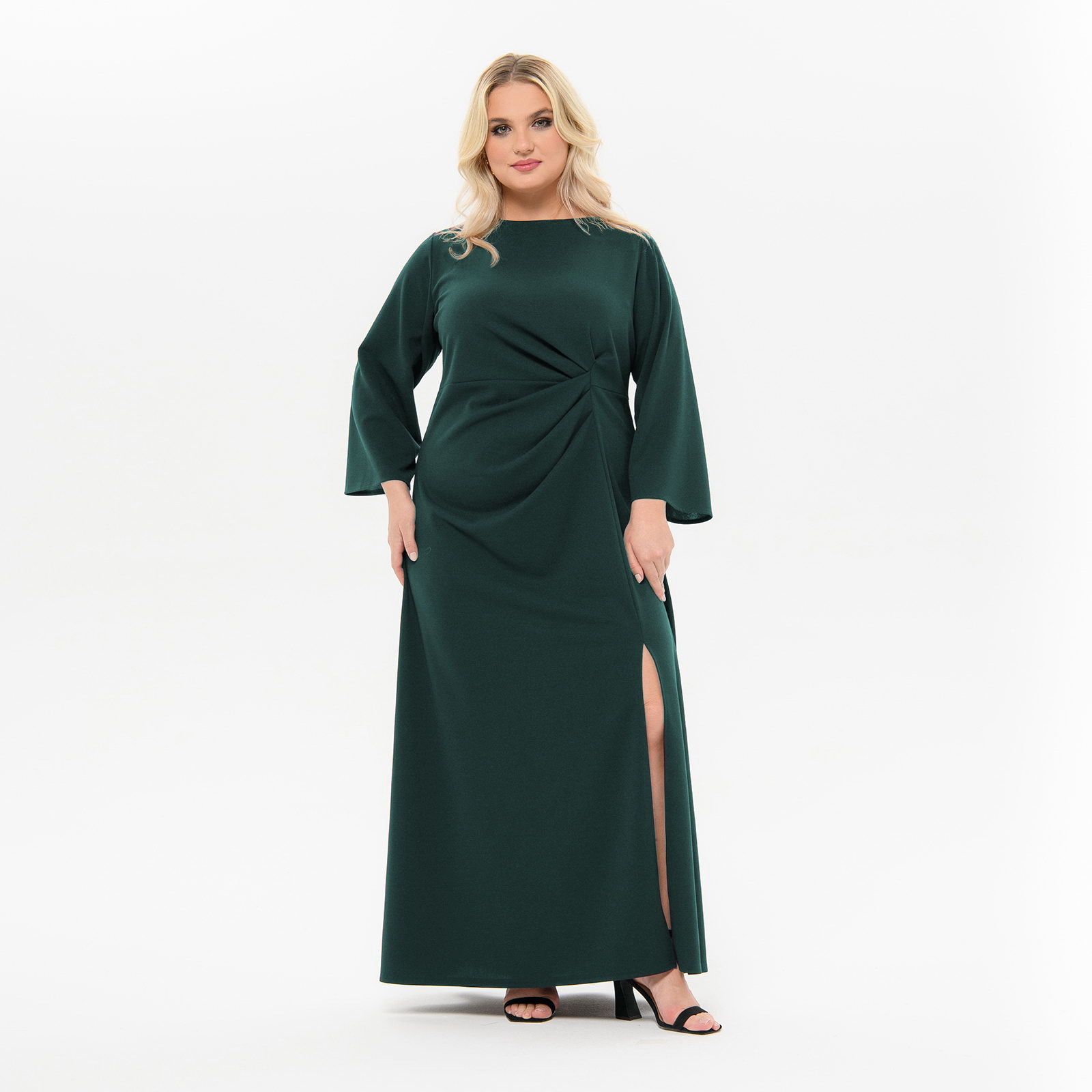 Изумрудный Платье вечернее, длинное, с драпировкой из плательного крепа с эластаном. Его оригинальный крой выгодно подчеркивает достоинства фигуры и скрывает малейшие недостатки.