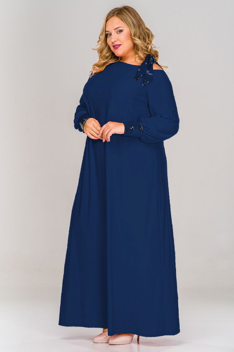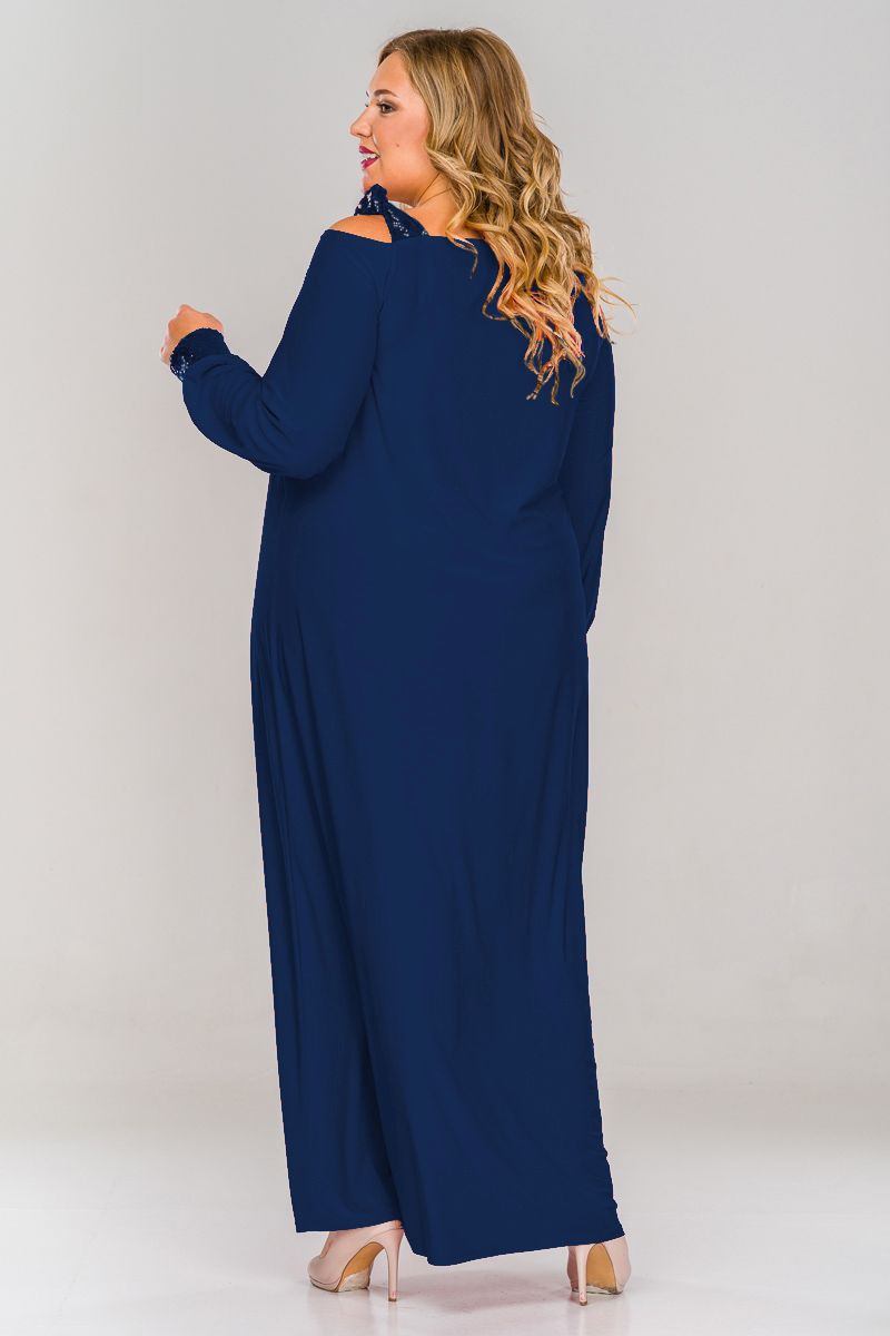 Платье вечернее свободное с манжетами из пайеток, темно-синее