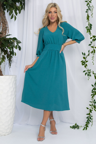 Превосходный выбор для тех, кто стремится к элегантности и утончённости. Модель с юбкой-клеш и рукавами длиной 3/4, которые оканчиваются резинкой, создаст женственный и изысканный образ. Талия платья отрезная, а по переду предусмотрена застёжка на пуговицы. Фигурный вырез горловины придаёт платью особый шарм. Пояс из основной ткани, который входит в комплект, подчёркивает талию, делая образ завершённым и стильным. Это платье станет отличным выбором для вечерних мероприятий и торжеств, позволяя вам выглядеть безупречно в любой ситуации.