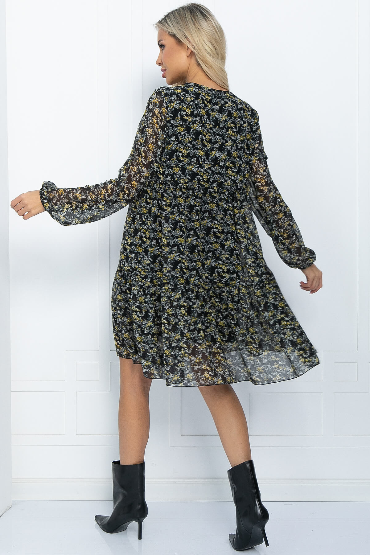 Женственное платье с цветочным принтом идеально подойдёт для любого случая. В холодное время года его можно дополнить тёплой верхней одеждой и отправиться на коктейльную вечеринку с подругами или на романтическое свидание. Платье украшено широким воланом по низу, который придаёт ему дополнительный шарм.