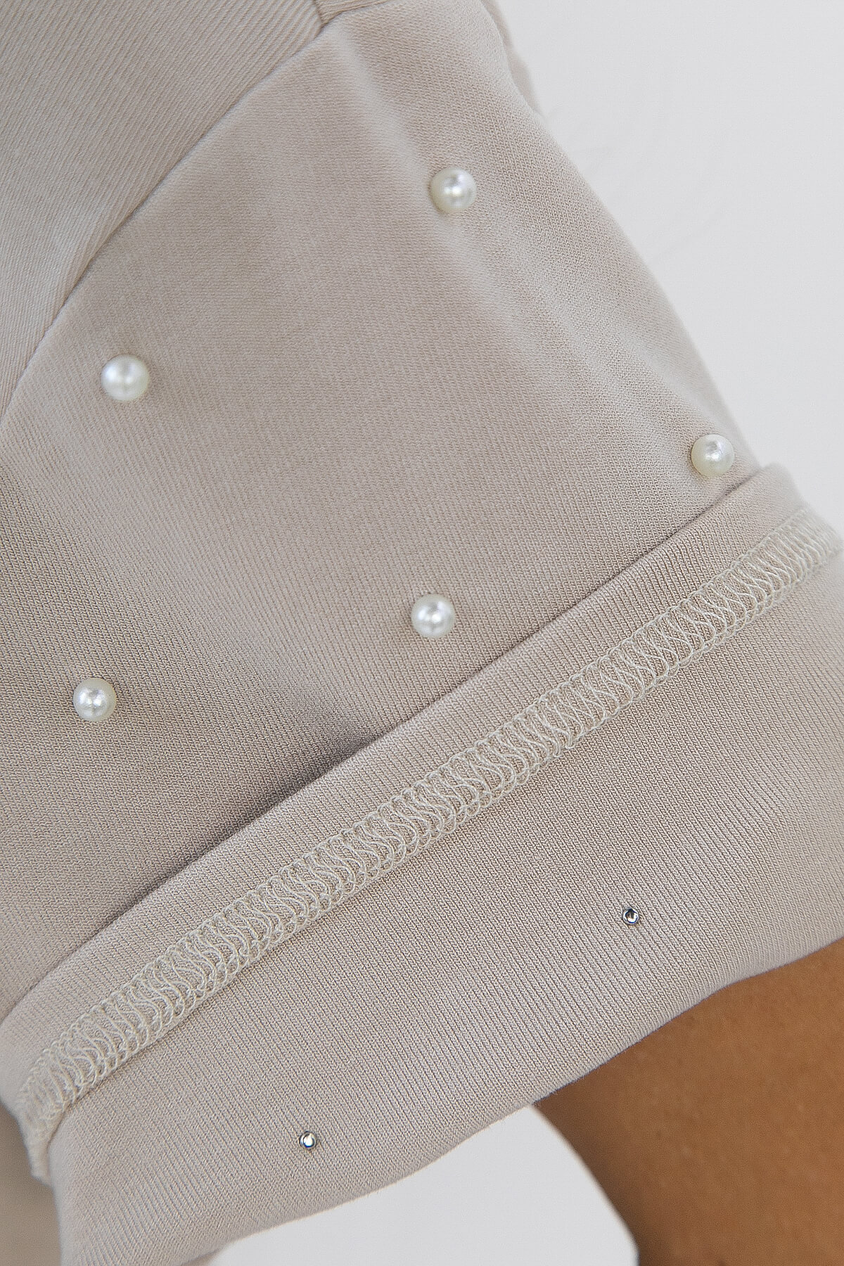 Платье-футболка мини-длины в бежевом оттенке — это то, что нужно для базового гардероба! Вы можете подчеркнуть свою талию, добавив тонкий ремешок на талии или широкий пояс. Особое внимание привлекают рукава, украшенные бусинами. Сочетайте его с кедами или сандалиями, чтобы создать непринуждённый и модный образ.