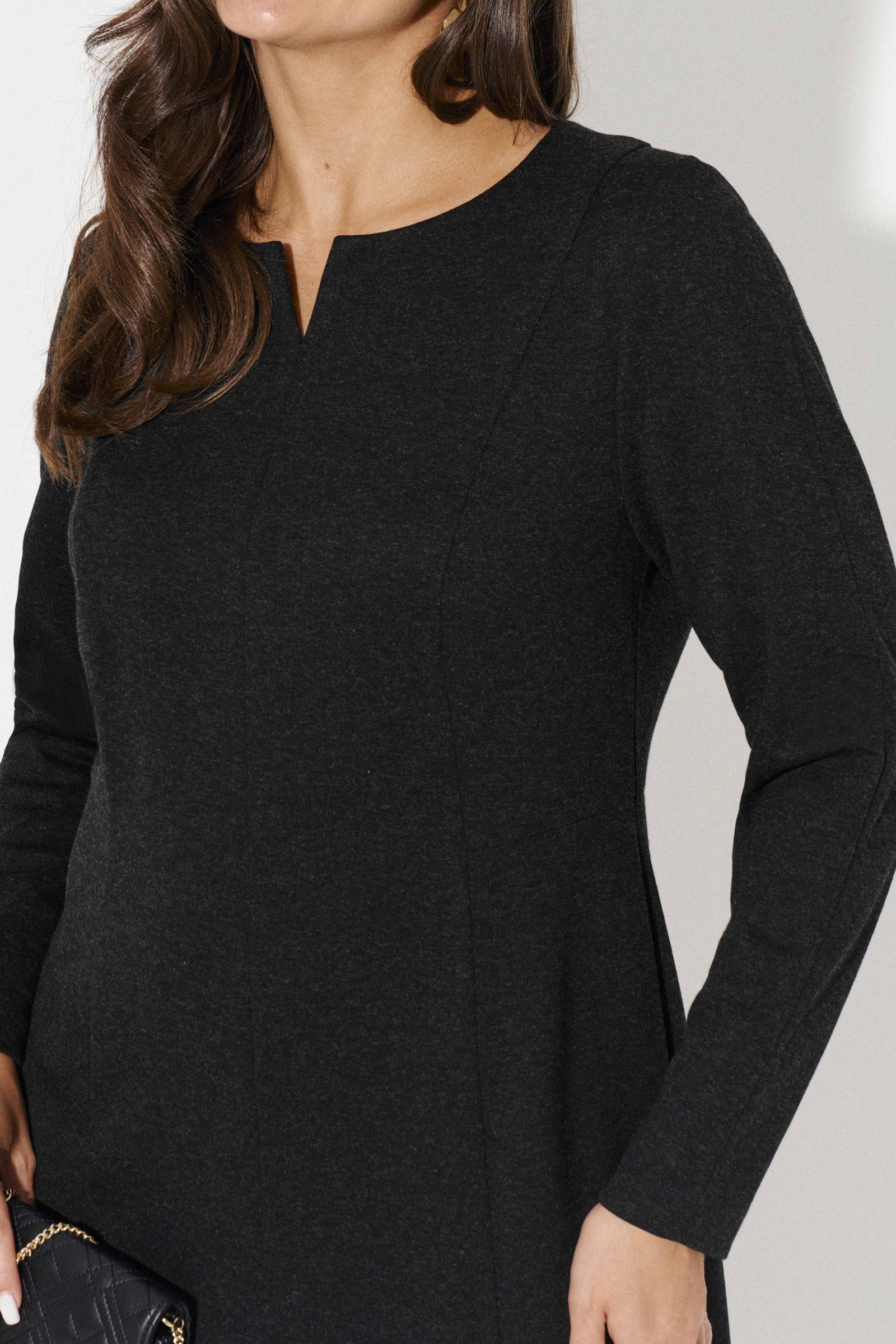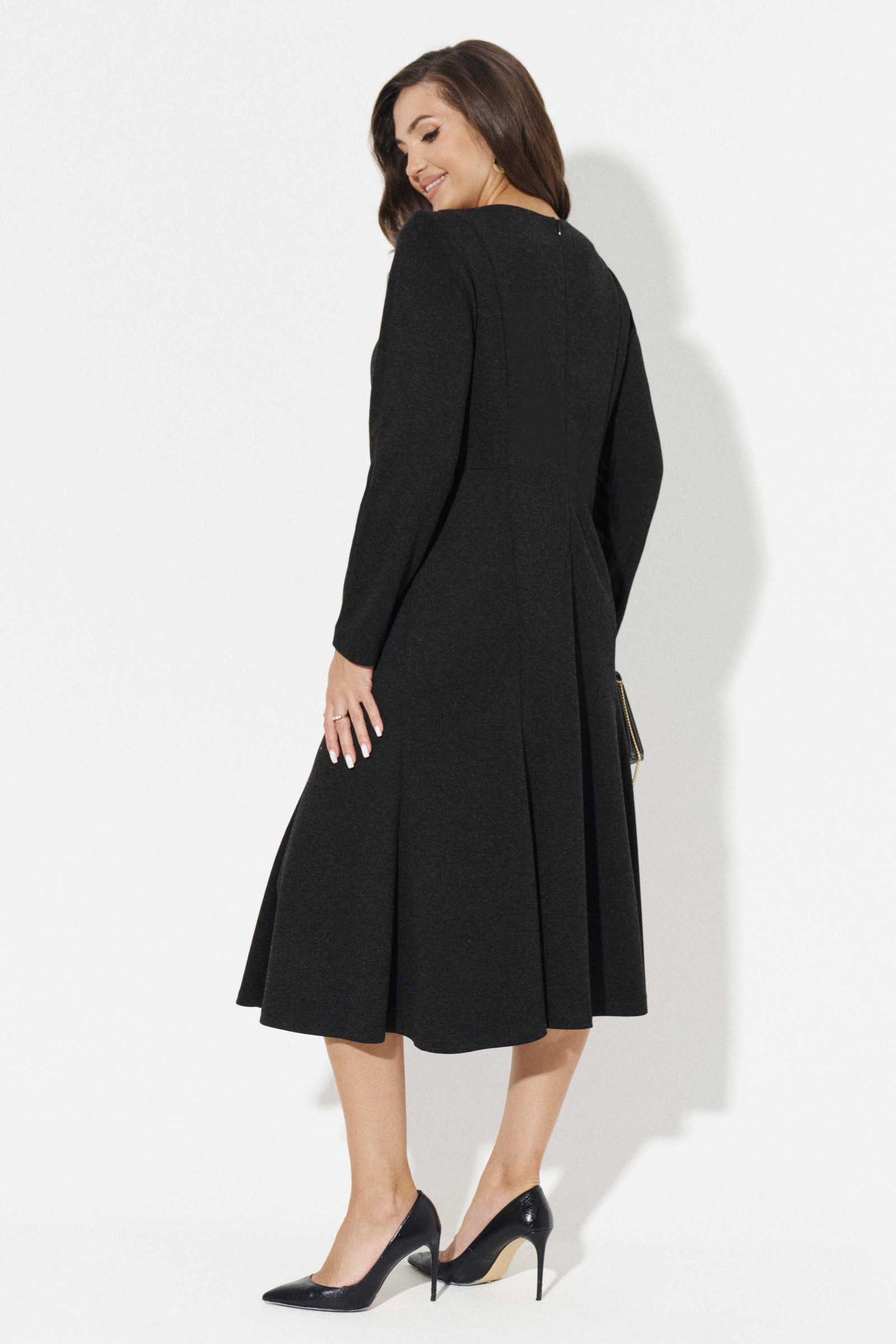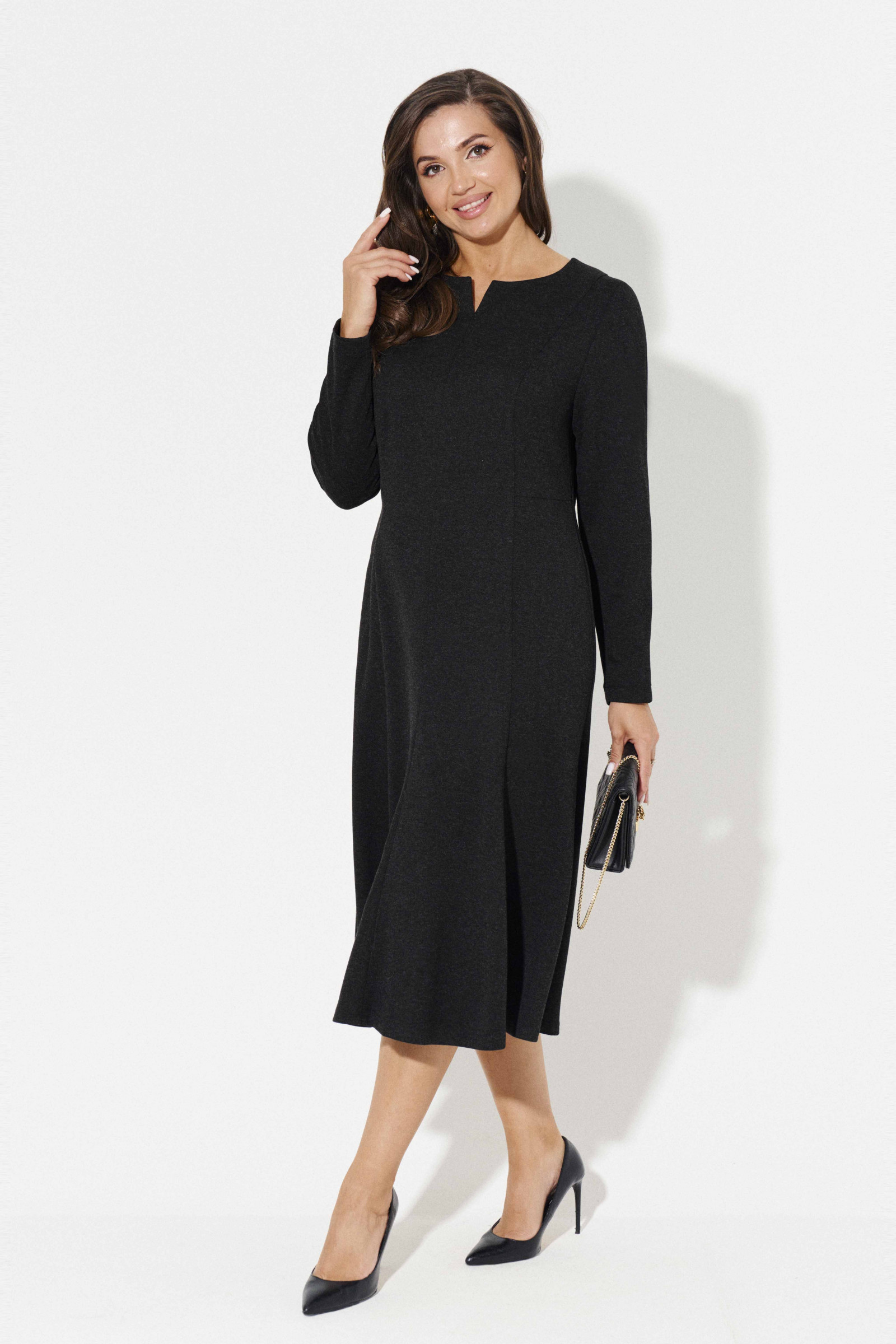 Если вам нужен универсальный вариант наряда, выбирайте трикотажное платье миди. Платье визуально отлично скрывает погрешности фигуры. Прямое платье с длинным рукавом подойдет для прохладного лета, ранее осени и поздней весны. В лаконичном стиле изделия кроется его красота. Круглая горловина изделия имеет небольшой вертикальный разрез, который подчеркивает пышную линию декольте. Заказывайте женское платье больших размеров от 50-58. Сочетайте его с различной обувью и аксессуарами, создавая нарядные или стандартные образы.