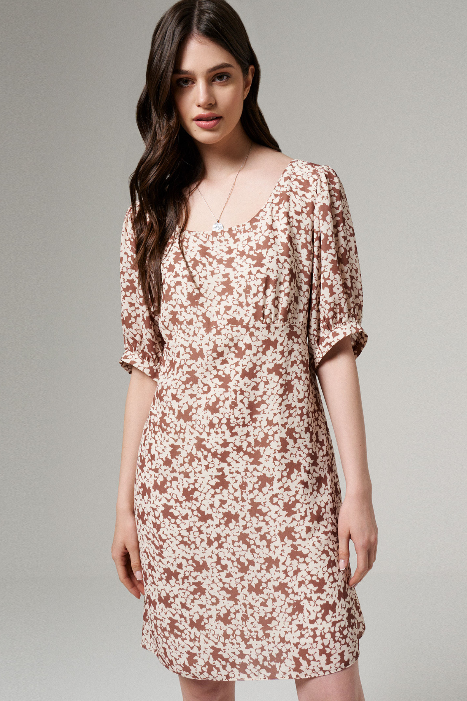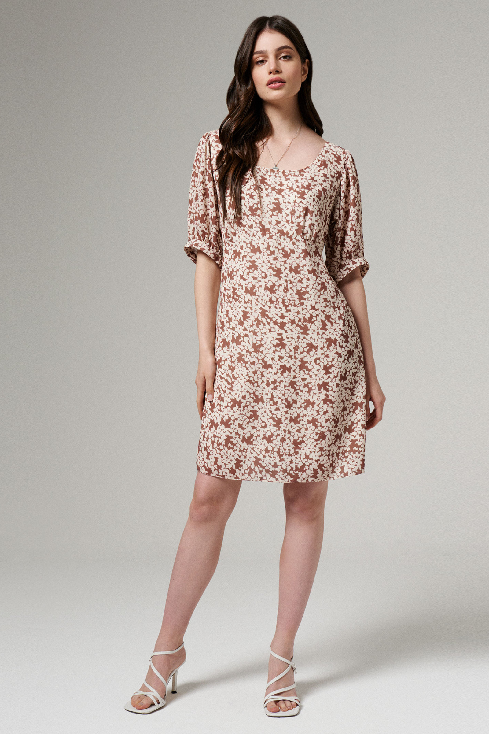 46 Платье: Дл.спины от высшей плечевой точки до талии - 42см, Длина изделия - 87см, Длина рукава - 17.2см, Ширина плеча - 6.5см, Ширина по бедрам - 63см, Ширина по груди - 53см, Ширина рукава - 29см, Ширина рукава внизу - 30.5см;
