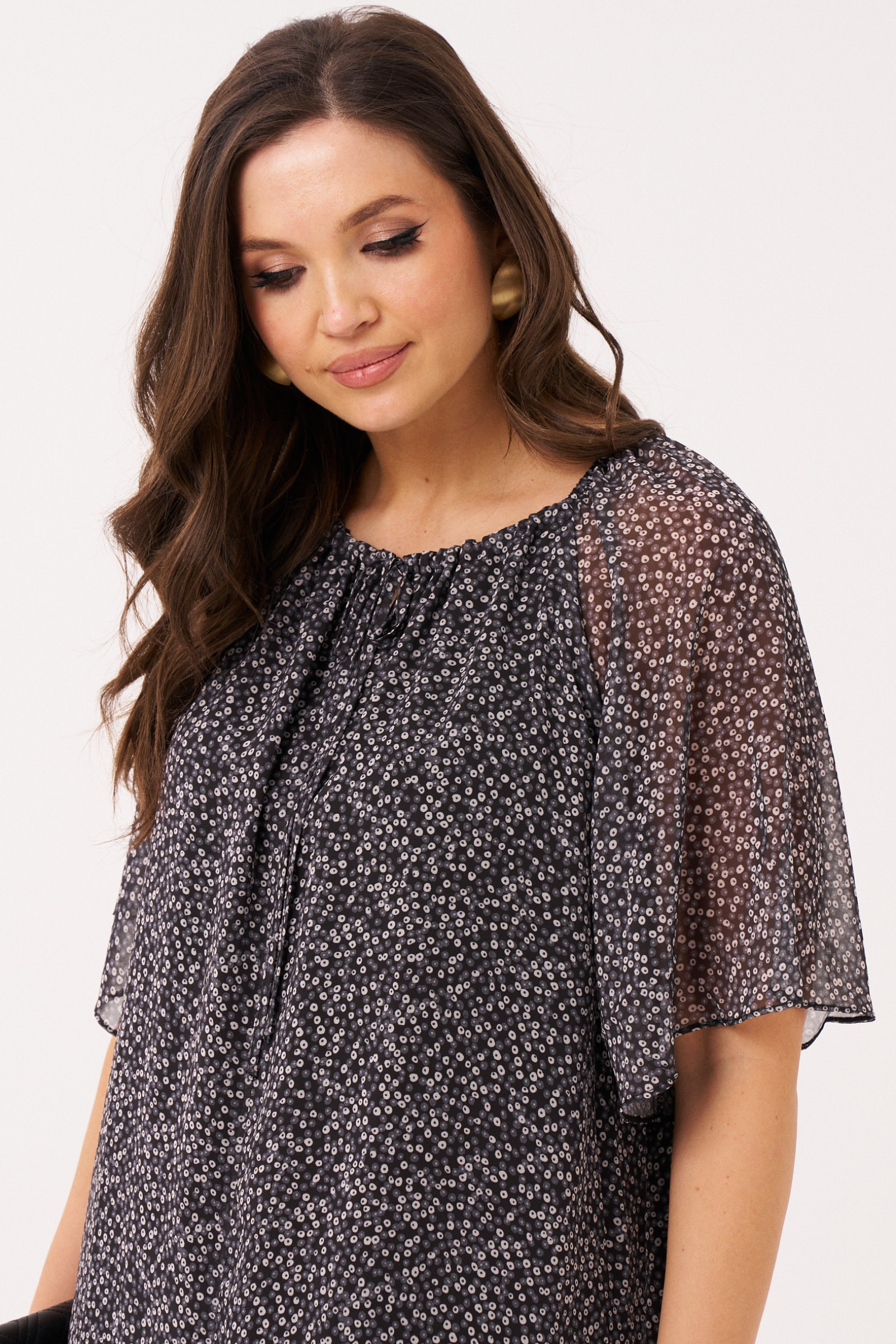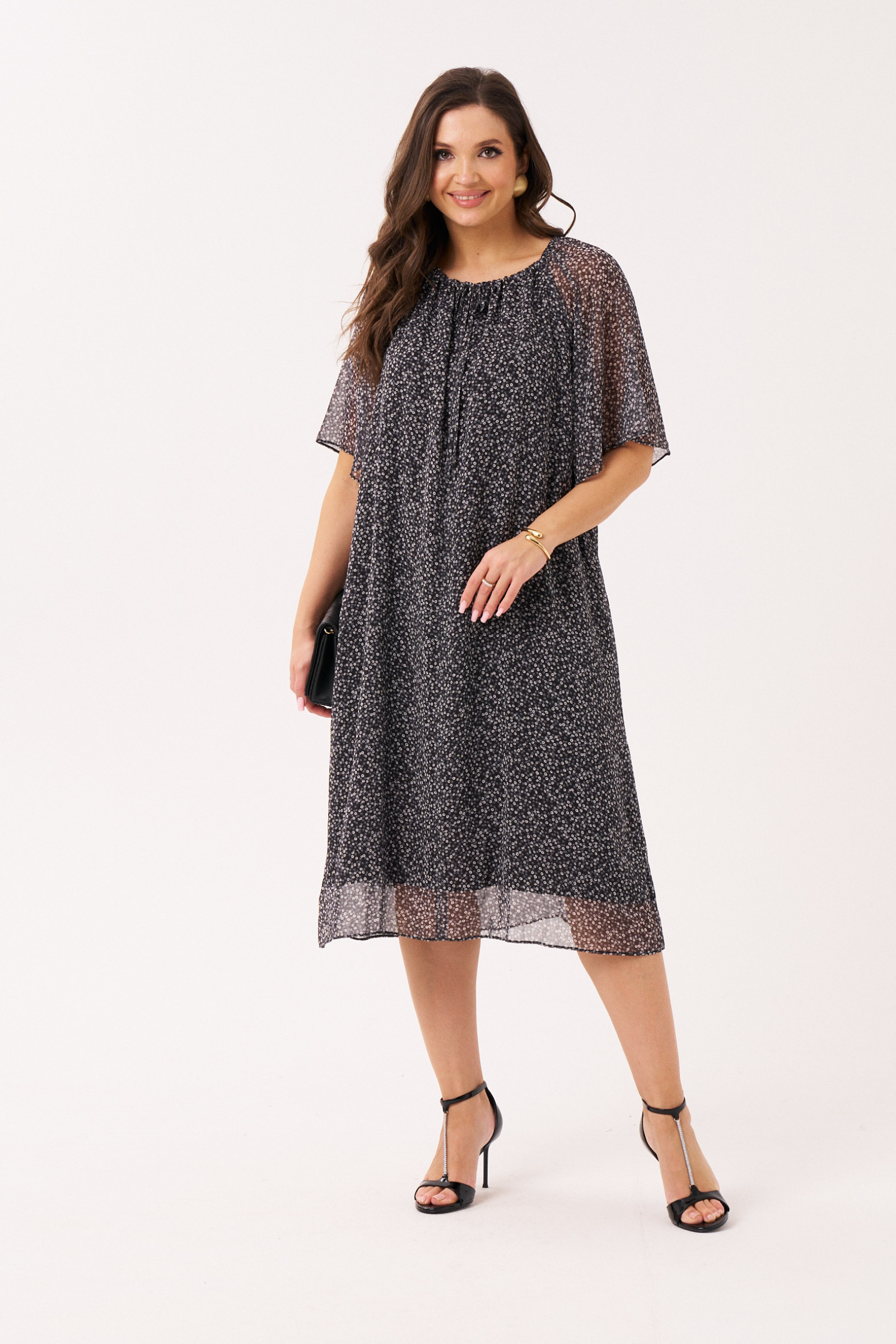 Платье женское из полиэфирного волокна для повседневной носки, с натуральной вискозной подкладкой. Платье прямого силуэта, расширенное к низу. Перед со средним швом, застежка на завязках с небольшим V-образным вырезом. Рукава реглан на резинке по плечевому шву. Очень легкий и воздушный вариант платья, которое отлично будет подходить для любого рода мероприятия, а главное за счет своей натуральной подкладки ваша кожа сможет расслабиться и дышать.