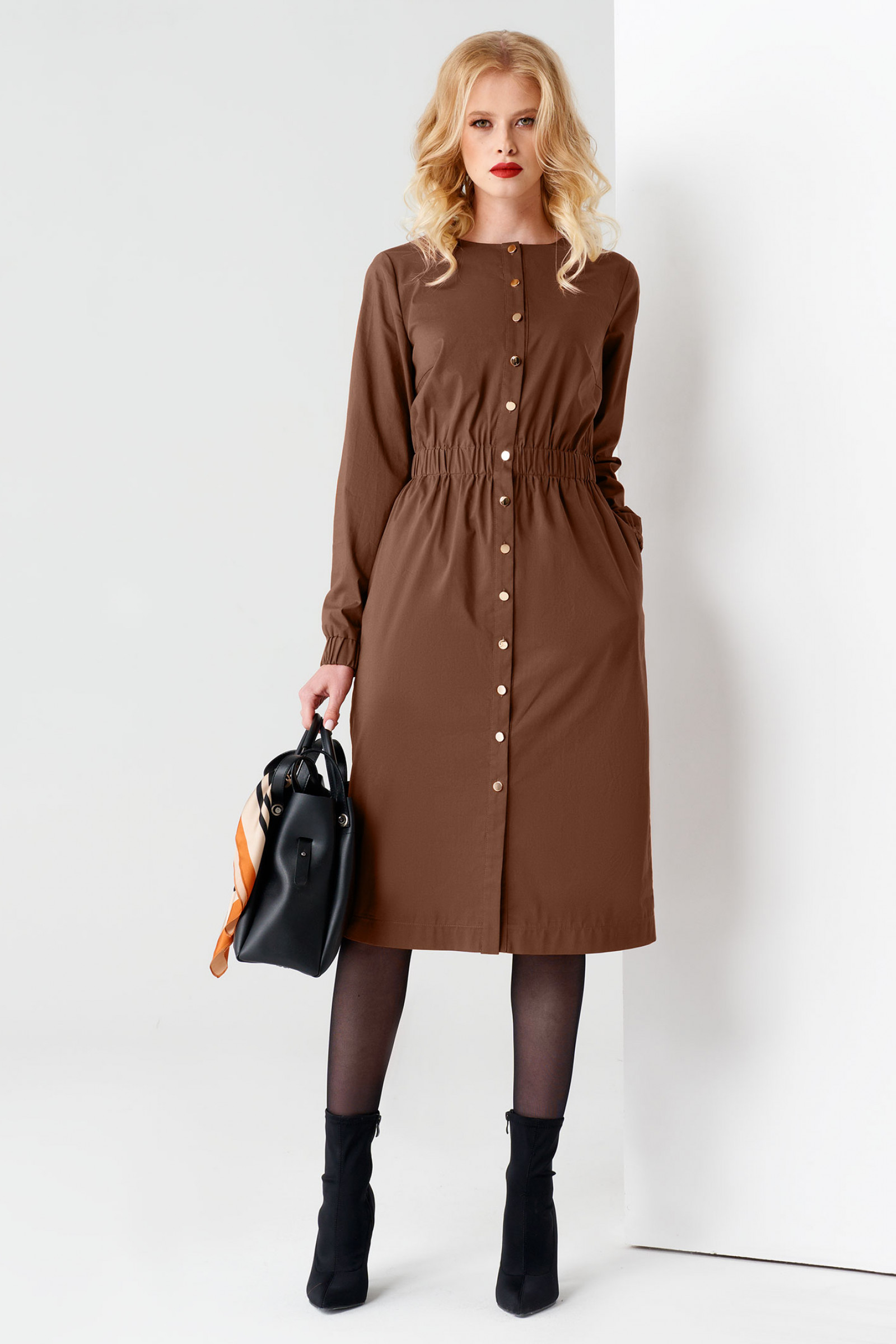 Стильное и лаконичное хлопковое платье .Лаконичное и простое по силуэту платье подчёркивает стройность фигуры. Силуэт прямий.На уровне талии и по низу рукавов оформлена широкая резинка. Застёжка спереди на планку с петлями и пуговицами. Вырез горловины круглый. В состав ткани платья входит эластан,поэтому оно удобно в эксплуатации.Эффектный вариант платья для яркой девушки,которая предпочитает в одежде стиль,минимализм и строгость.